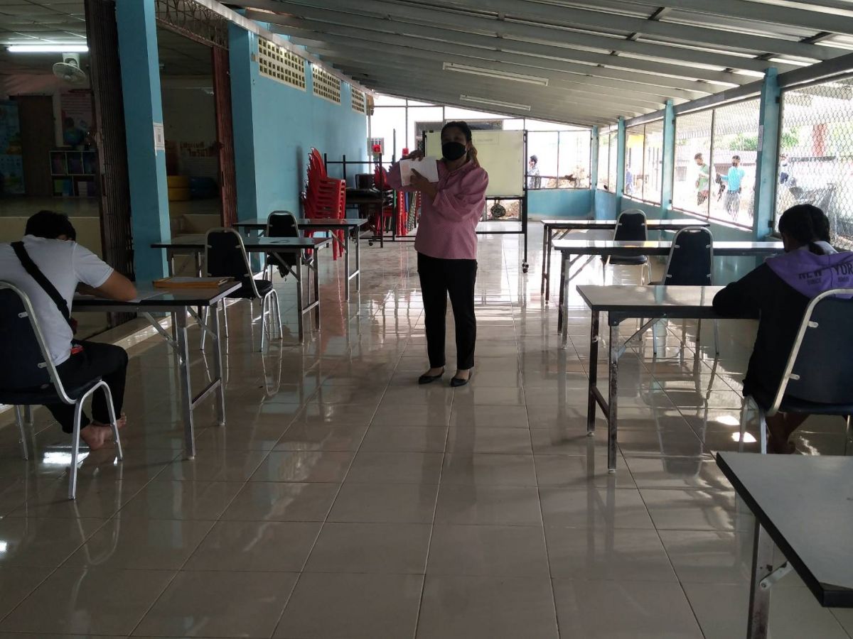 กศน.อำเภอทุ่งหว้า คณะทีมงานดำเนินการสอบปลายภาคให้กับนักศึกษาที่พ้นจากความเสี่ยงจากโรคโควิด-19
