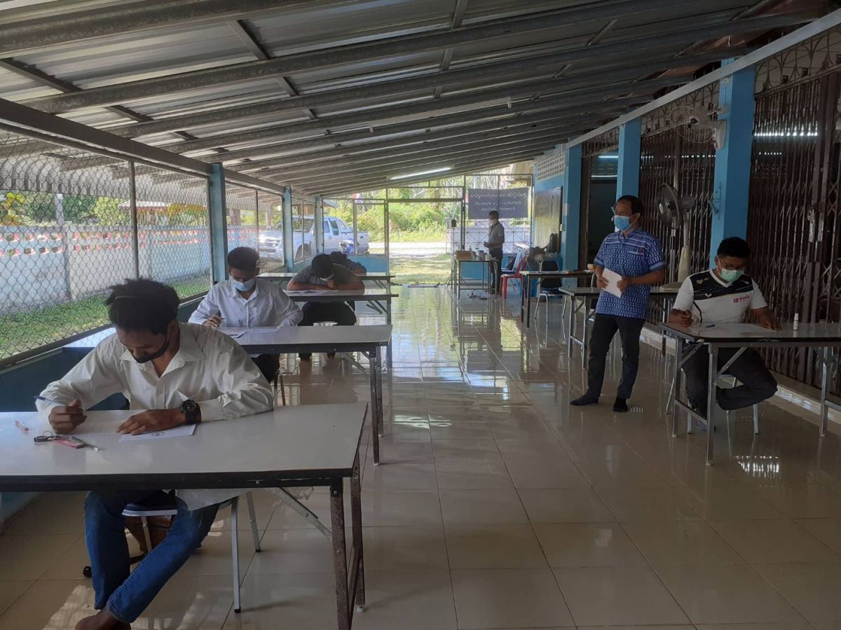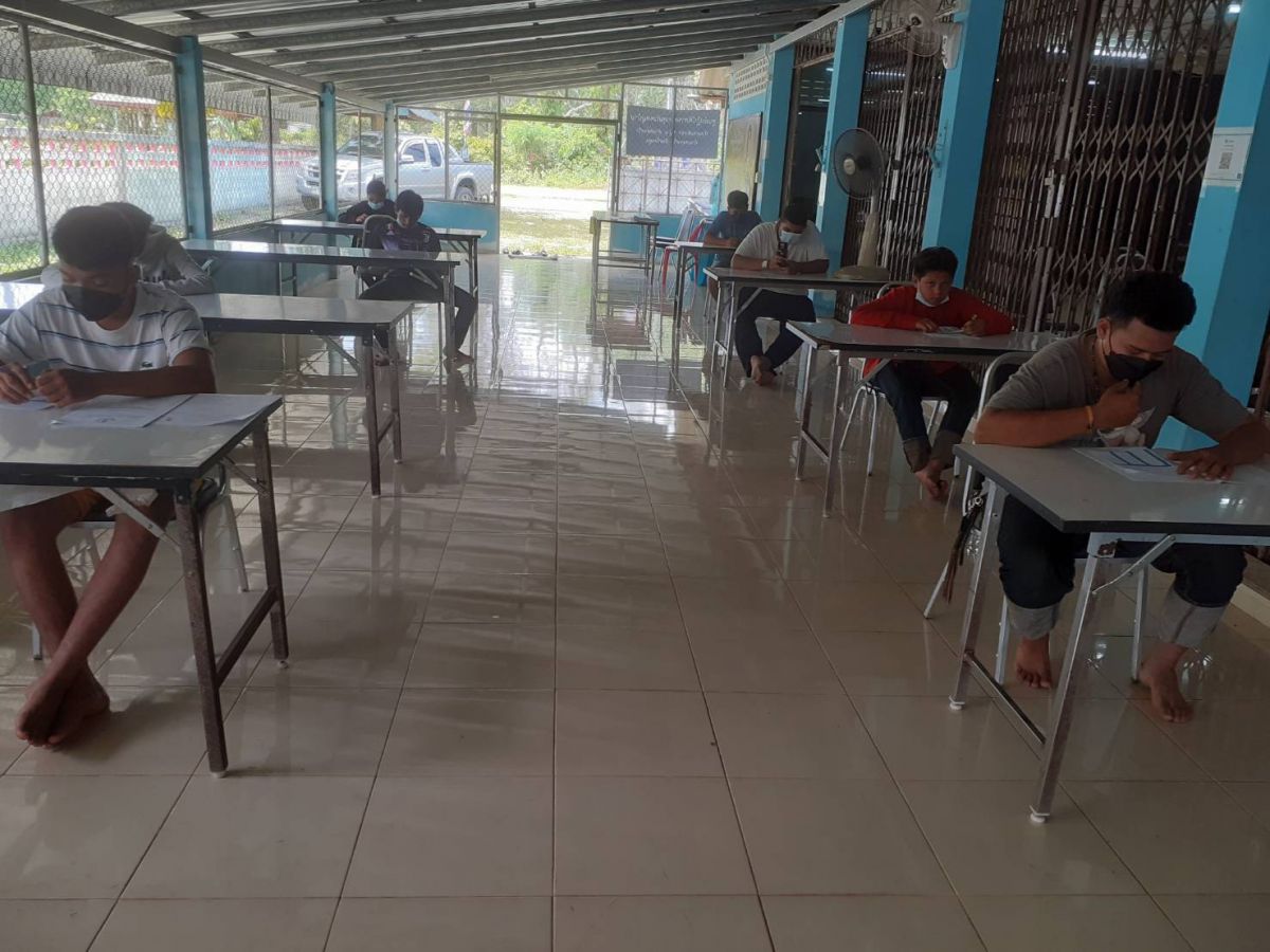 นายอาดำ ลิงาลาห์ ผู้อำนวยการศูนย์ กศน.อำเภอทุ่งหว้า จังหวัดสตูล มอบหมายให้คณะทีมงานดำเนินการสอบปลายภาคให้กับนักศึกษาที่พ้นจากความเสี่ยงจากโรคโควิด-19