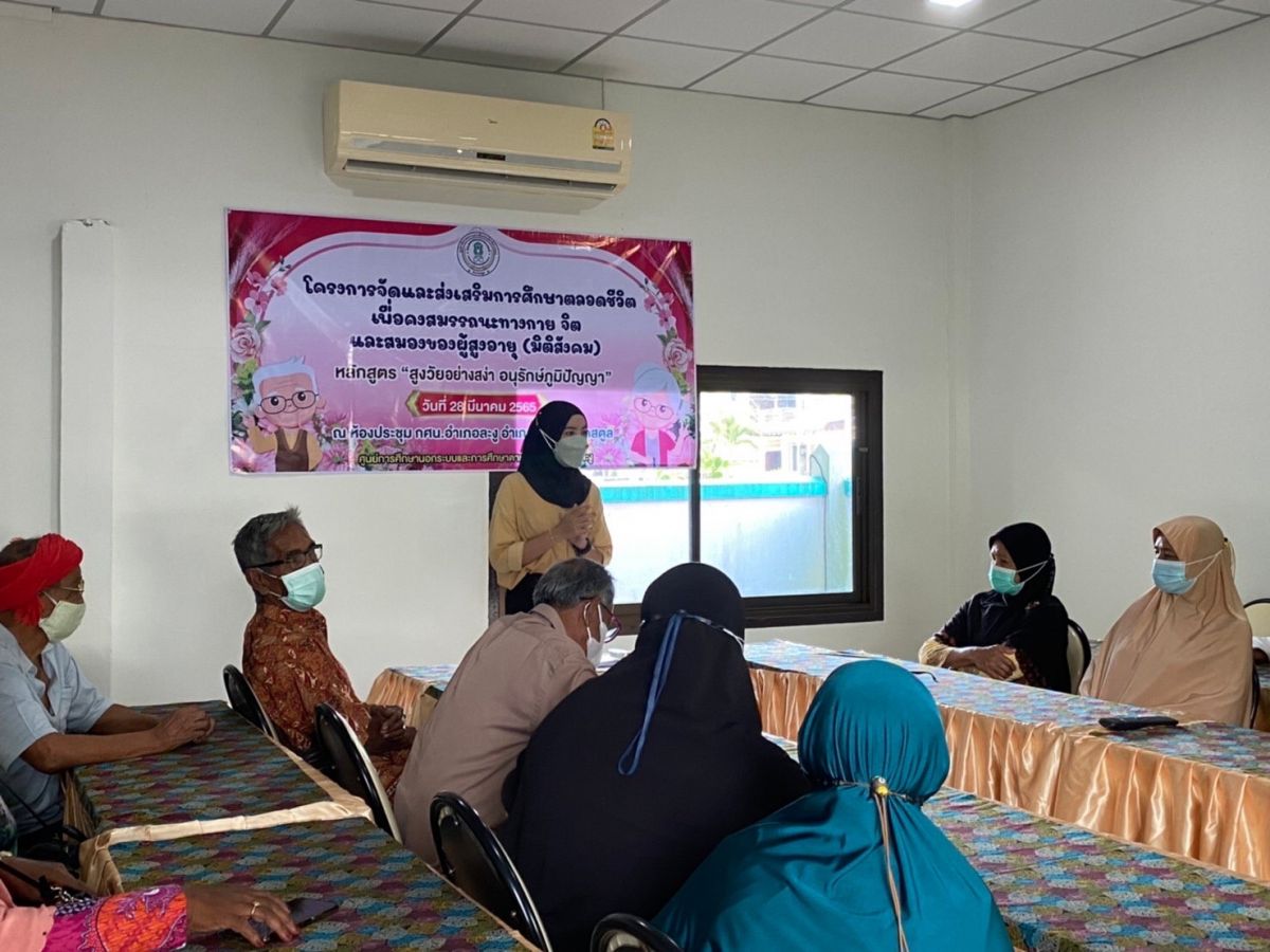 กศน.อำเภอละงู จัดโครงการจัดและส่งเสริมการศึกษาตลอดชีวิตเพื่อคงสมรรถนะทางกาย จิต และสมองของผู้สูงอายุ