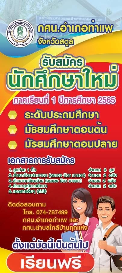 กศน.อำเภอท่าแพ ประชาสัมพันธ์รับสมัครนักศึกษาใหม่ ภาคเรียนที่ 1 ปีการศึกษา 2565