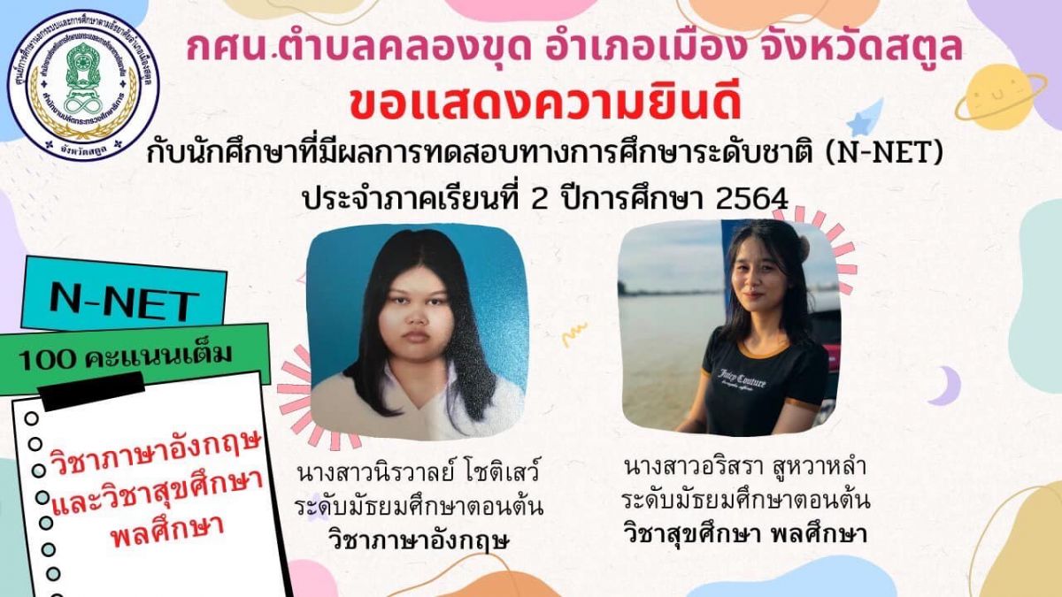 ขอแสดงความยินดี นักศึกษา กศน.ตำบลคลองขุด อำเภอเมืองสตูล สอบ N-net 100 คะแนนเต็ม