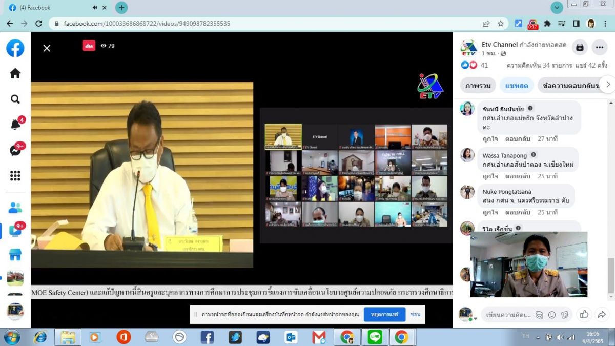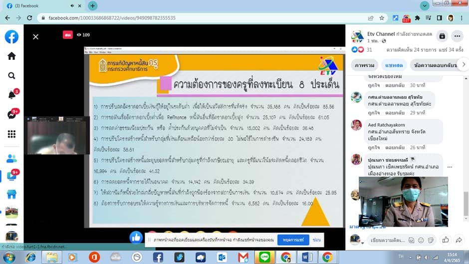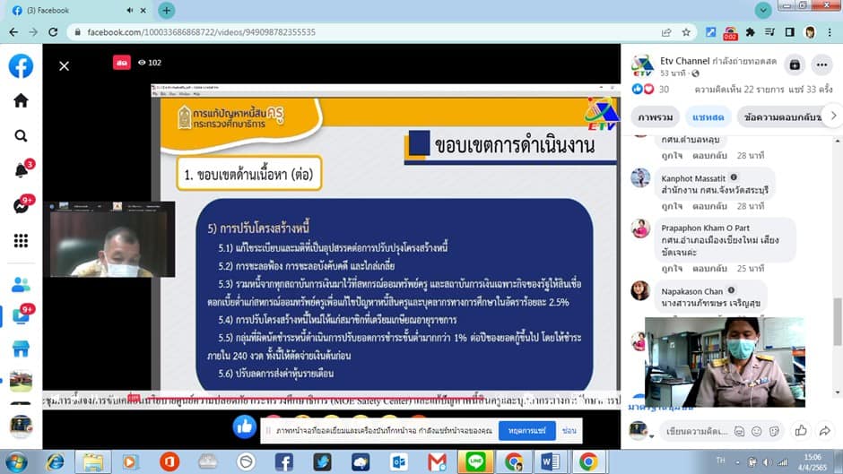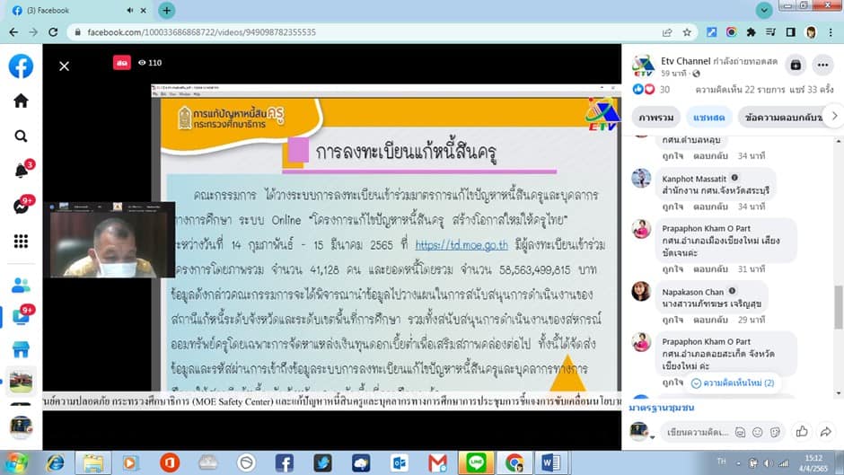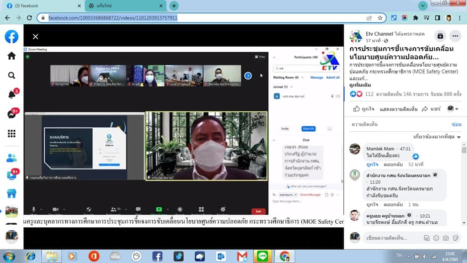กระทรวงศึกษาธิการ (MoE safety conter )และการแก้ไขปัญหาหนี้สินครูและบุคลากรทางการศึกษา ผ่านระบบการประชุมออนไลน์ Facebook Live ณ กศน.อำเภอมะนัง ตำบลนิคมพัฒนา จังหวัดสตูล