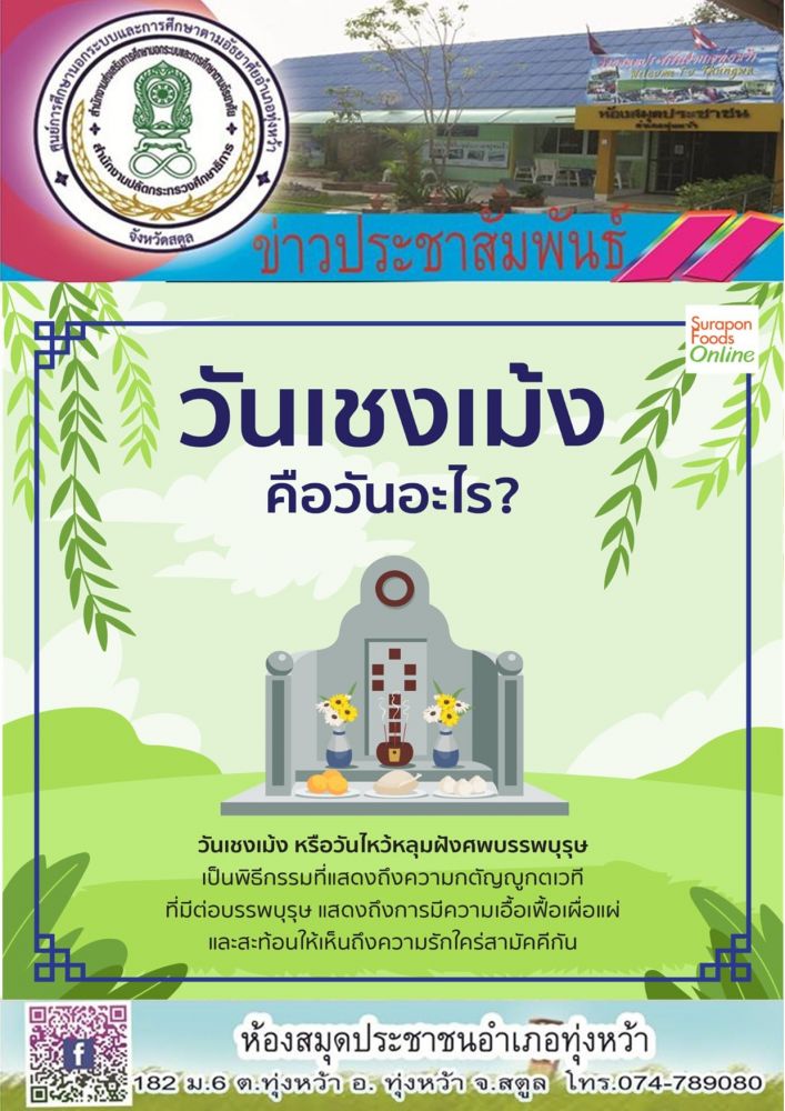 ห้องสมุดประชาชนอำเภอทุ่งหว้า ส่งเสริมการอ่านออนไลน์ \" วันเชงเม้ง\"