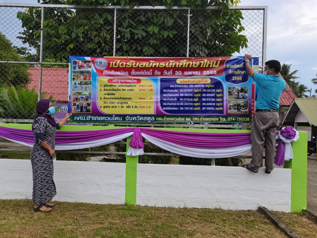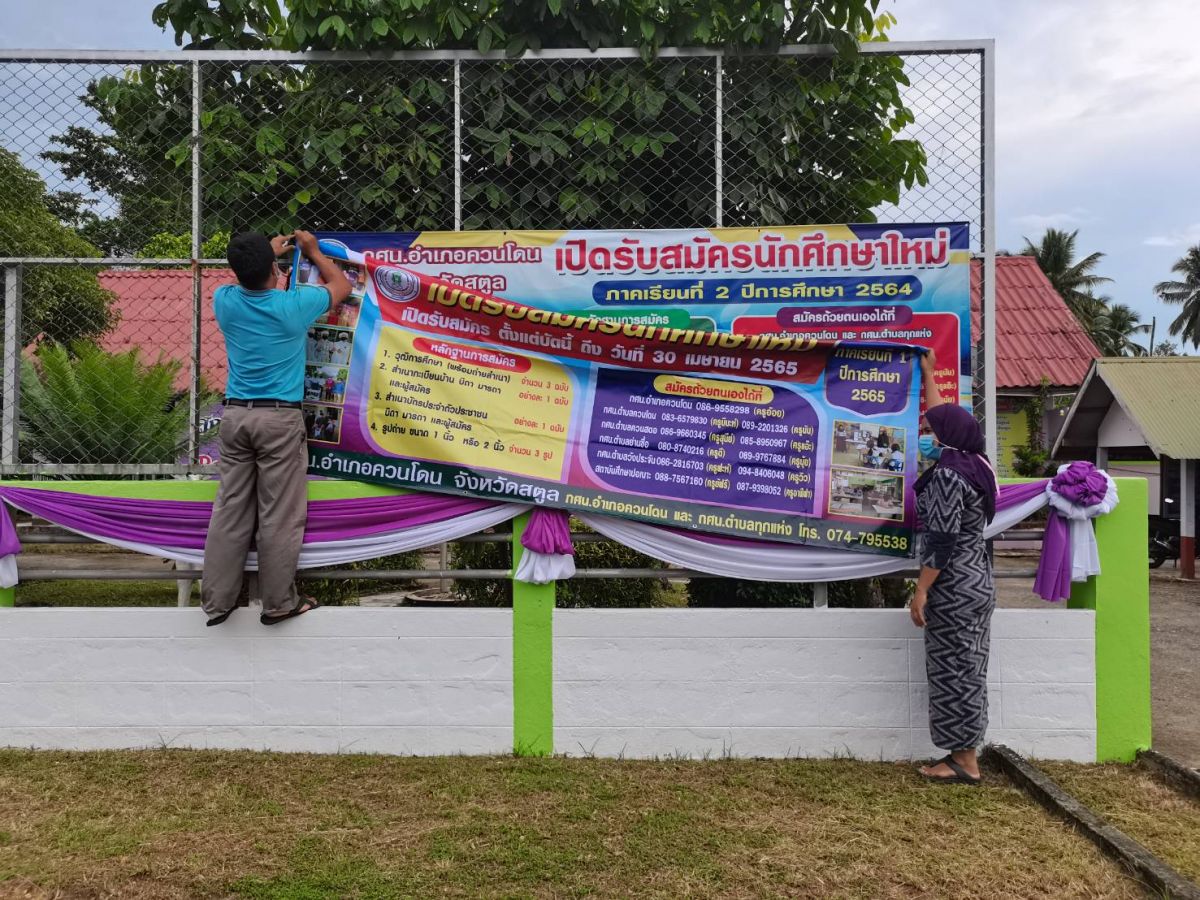 กศน.อำเภอควนโดน ร่วมติดตั้งป้ายประชาสัมพันธ์รับสมัครนักศึกษาใหม่ภาคเรียนที่ 1/2565