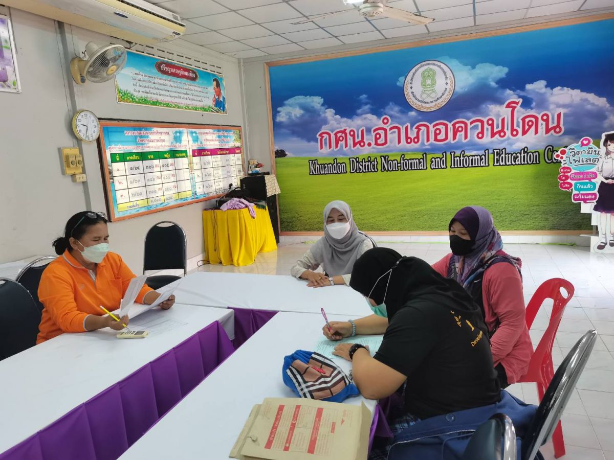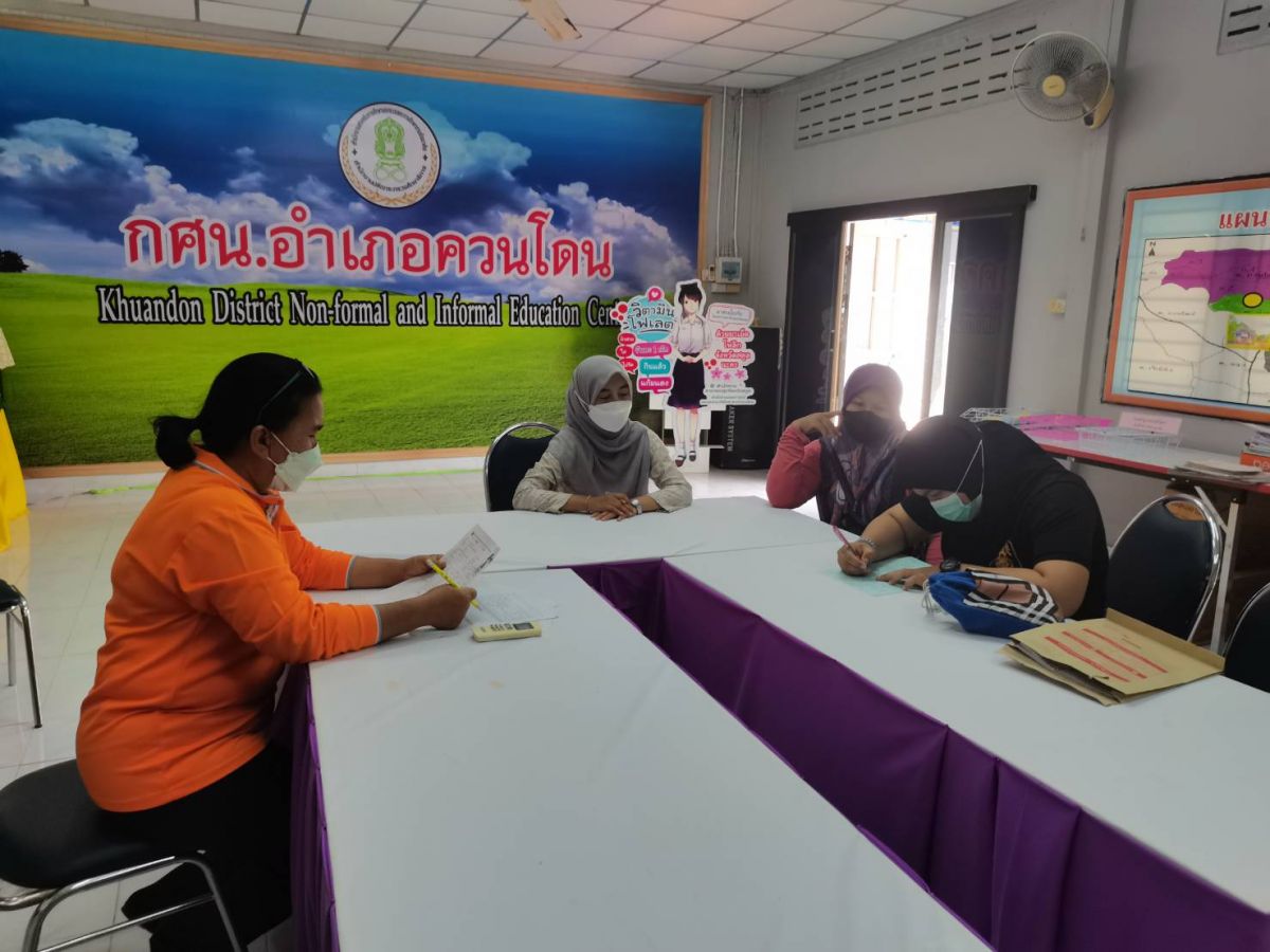นางเนาวรัตน์ ศรีหมั่น ครู ชำนาญการ รักษาการในตำแหน่งผู้อำนวยการ กศน.อำเภอควนโดน มอบหมายให้นางรัตติยา ทรุพงษ์ ครูอาสาสมัคร กศน. รับสมัครนักศึกษา ประจำภาคเรียนที่ 1/2565 เพื่อสร้างโอกาส ให้เด็ก เยาวชน และประชาชนที่พลาดโอกาสทางการศึกษา ได้ศึกษาเล่าเรียนต่อไป ณ กศน.อำเภอควนโดน จังหวัดสตูล