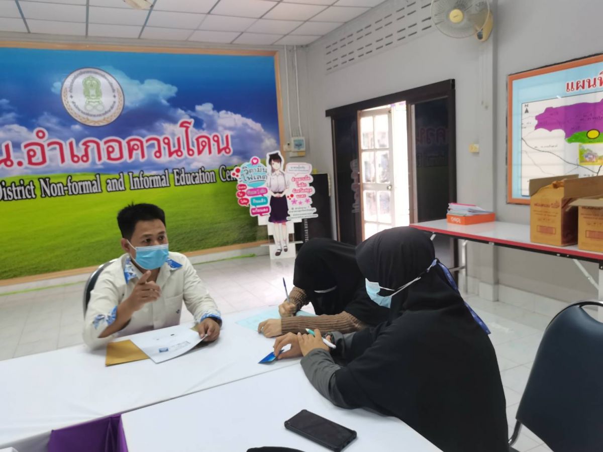 นางเนาวรัตน์ ศรีหมั่น ครู ชำนาญการ รักษาการในตำแหน่งผู้อำนวยการ กศน.อำเภอควนโดน มอบหมายให้นางสาวอาฟีฟา อาลีมิง ครูอาสาสมัครประจำสถาบันศึกษาปอเนาะ รับสมัครนักศึกษา ประจำภาคเรียนที่ 1/2565 เพื่อสร้างโอกาส ให้เด็ก เยาวชน และประชาชนที่พลาดโอกาสทางการศึกษา ได้ศึกษาเล่าเรียนต่อไป ณ กศน.อำเภอควนโดน จังหวัดสตูล