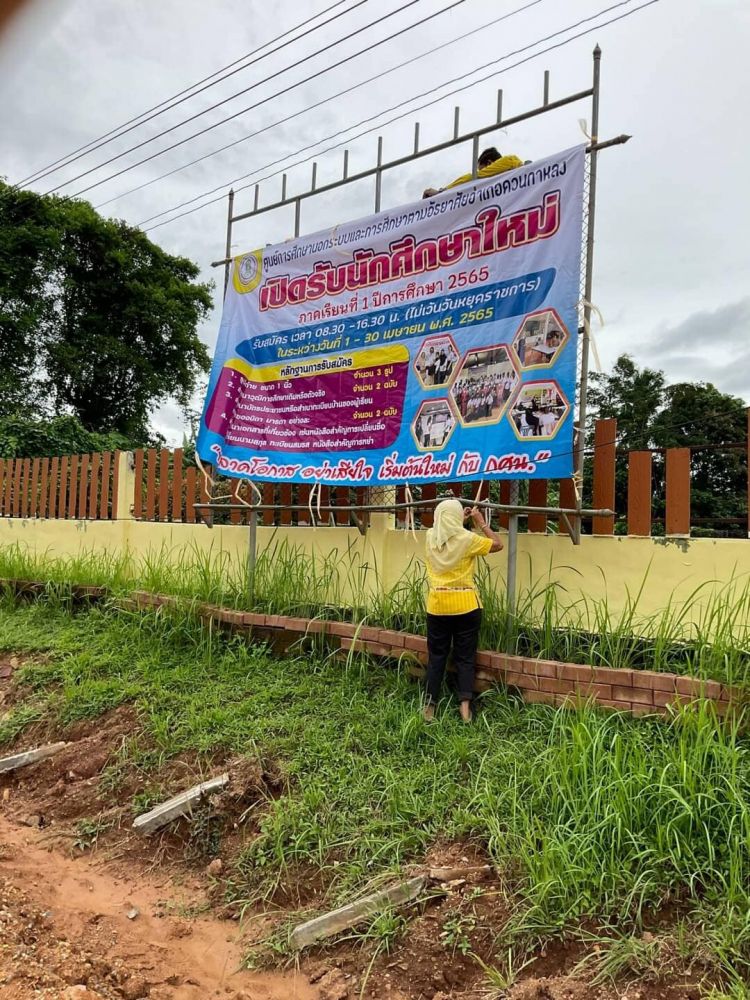 ร่วมติดตั้งป้ายประชาสัมพันธ์รับสมัครนักศึกษาใหม่ภาคเรียนท่ี 1/2565