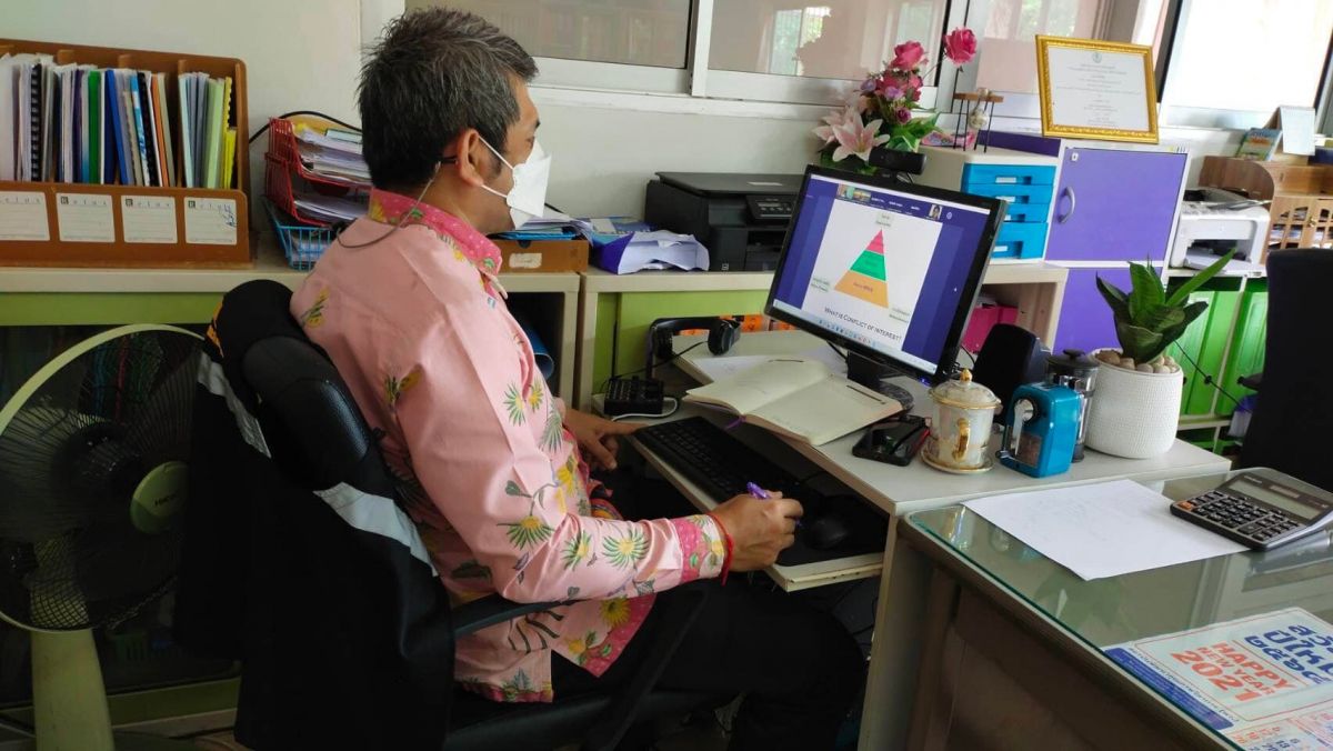 นายทวีศักดิ์ แซ่เจน ครูชำนาญการ รักษาการในตำแหน่งผู้อำนวยการศูนย์ เข้าร่วมประชุมโครงการขับเคลื่อนการปลูกจิตสำนึกต่อต้านทุจริตด้วยหลักสูตรต้านทุจริตศึกษาของหน่วยงานทางการศึกษาในพื้นที่สำนักงานศึกษาธิการภาคใต้ ประจำปีงบประมาณ 2565 ผ่านระบบการประชุมออนไลน์ (Zoom Cloud Meeting)