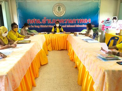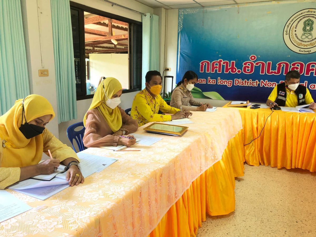 นายทวีศักดิ์ แซ่เจน ครูชำนาญการ รักษาการในตำแหน่งผู้อำนวยการศูนย์ กศน.อำเภอควนกาหลง ประชุมบุคลากรเพื่อติดตามการดำเนินงานกศน.ให้เป็นไปในทิศทางเดียวกันโดยกระบวนการดำเนินการจัดกิจกรรมเป็นไปตามแนวปฏิบัติการควบคุมและป้องกันการแพร่ระบาดของโรคติดเชื้อไวรัสโคโรน่า 2019