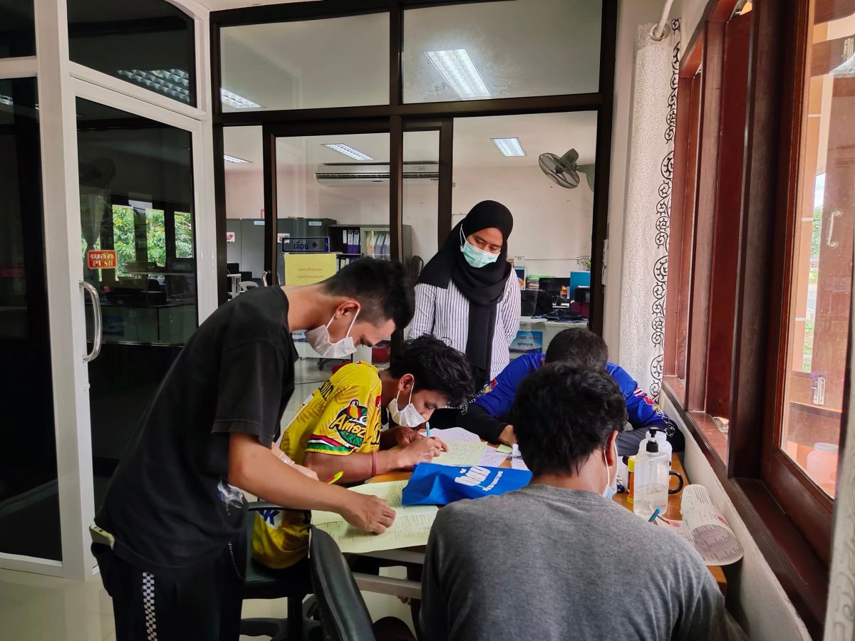 นางสาวจตุพร ทหารไทย ครูชำนาญการ รักษาการในตำแหน่ง ผู้อำนวยการศูนย์ กศน.อำเภอมะนัง จังหวัดสตูล มอบหมายให้นางสาวทิพาพร โต๊ะมิ ครู อาสาฯ กศน.ตำบลนิคมพัฒนา รับสมัครนักศึกษาใหม่ ภาคเรียนที่ 1 ปีการศึกษา 2565 ณ กศน.อำเภอมะนัง หมู่ที่ 7 ตำบลนิคมพัฒนา อำเภอมะนัง จังหวัดสตูล
