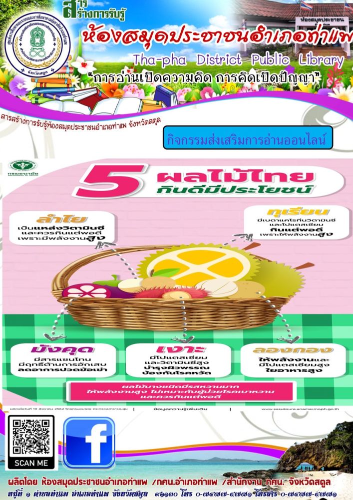 " 5 ผลไม้ไทย กินดีมีประโยชน์" เพื่อส่งเสริมการอ่านให้กับประชาชนทั่วไป