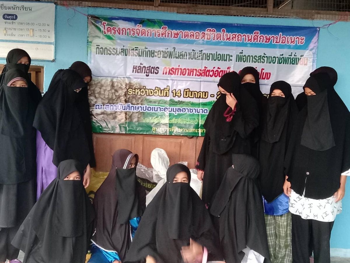 กศน.อำเภอควนกาหลงลงพื้นที่ติดตามการดำเนินกิจกรรมส่งเสริมอาชีพในสถาบันศึกษาปอเนาะ หลักสูตรการทำอาหารสัตว์อัดเม็ด