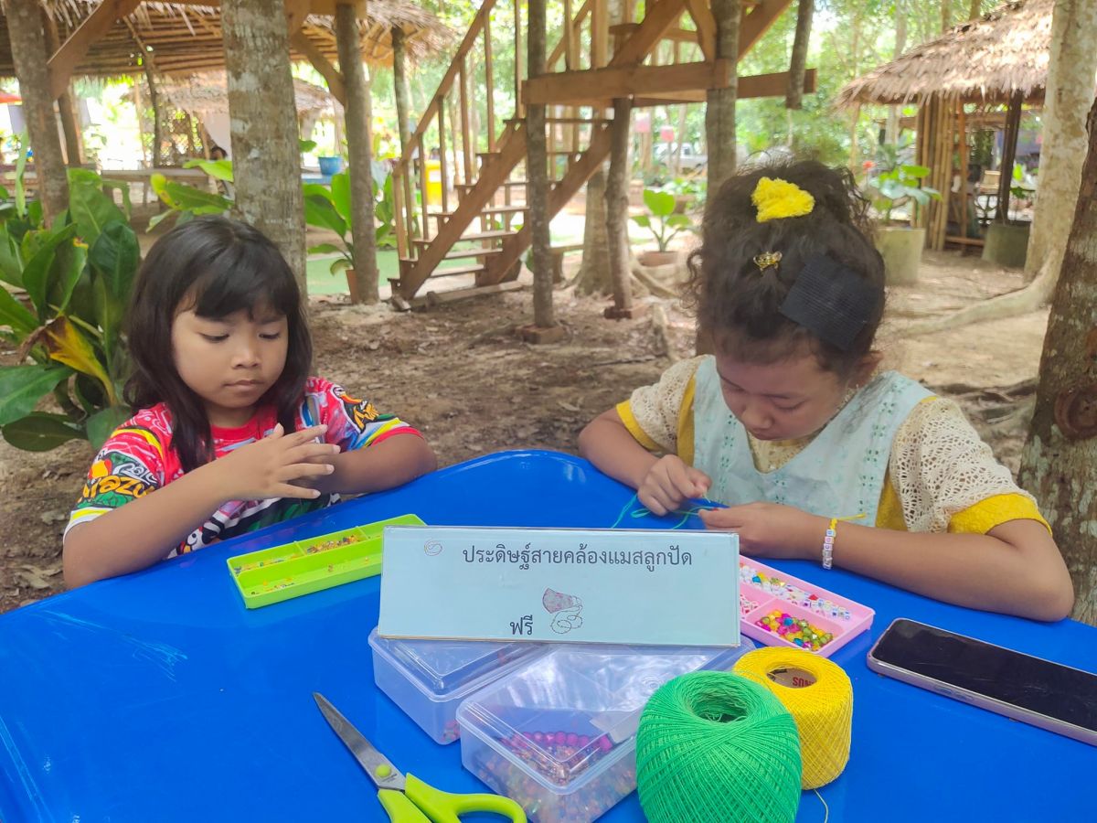 - กิจกรรมประดิฐสร้อยข้อมือจากลูกปัดและไหมพรม (DIY) เพื่อได้ฝึกสมาธิให้กับน้องๆที่สนใจในงานฝีมือ