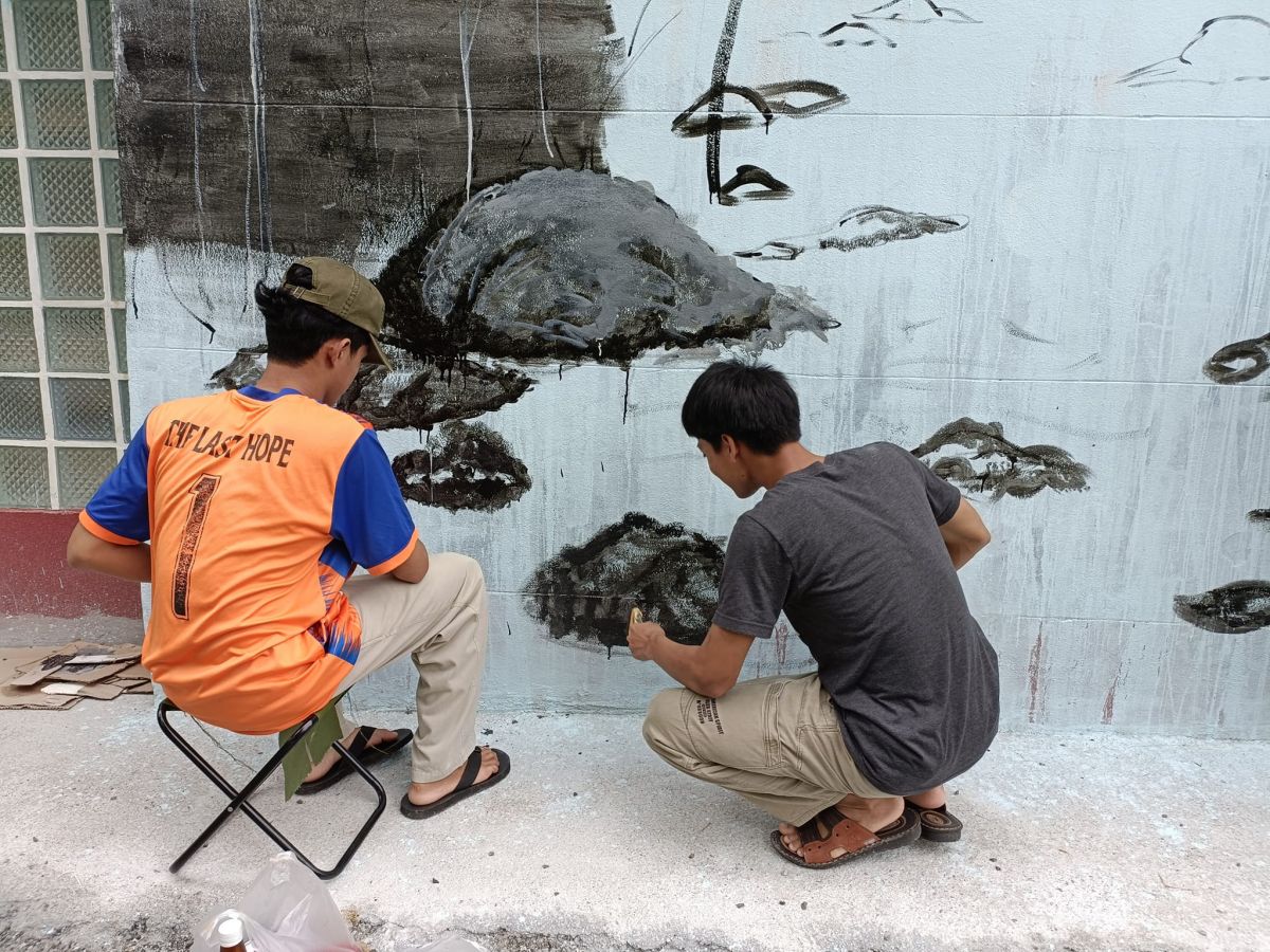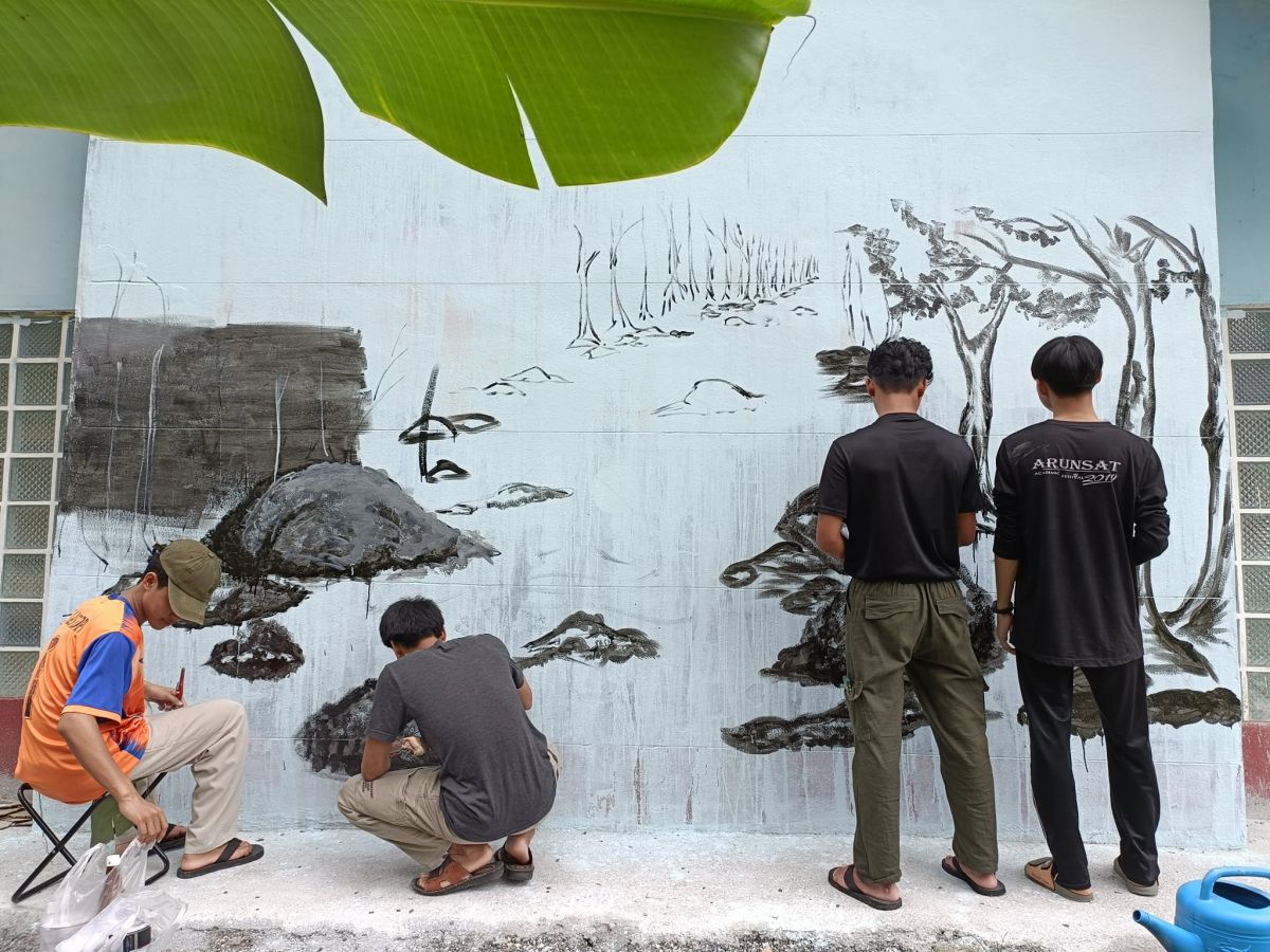 นักศึกษา กศน ตำบลควนสตอ ปรับปรุงภูมิทัศน์ ศิลปะบนฝาผนัง