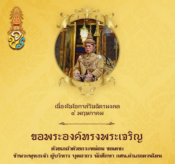ห้องสมุดประชาชนอำเภอควนโดน กศน.อำเภอควนโดน จังหวัดสตูล ขอเชิญพสกนิกรชาวไทย ร่วมลงนามถวายพระพรชัยมงคล พระบาทสมเด็จพระปรเมนทรรามาธิบดีศรีสินทรมหาวชิราลงกรณ มหิศรภูมิพลราชวรางกูร กิติสิริสมบูรณอดุลยเดช สยามินทราธิเบศราชวโรดม บรมนาถบพิตร พระวชิรเกล้วเจ้าอยู่หัว เนื่องในวันฉัตรมงคล วันที่ ๔ พฤษภาคม ๒๕๖๕ ตลอดทั้งเดือนพฤษภาคม ๒๕๖๕
