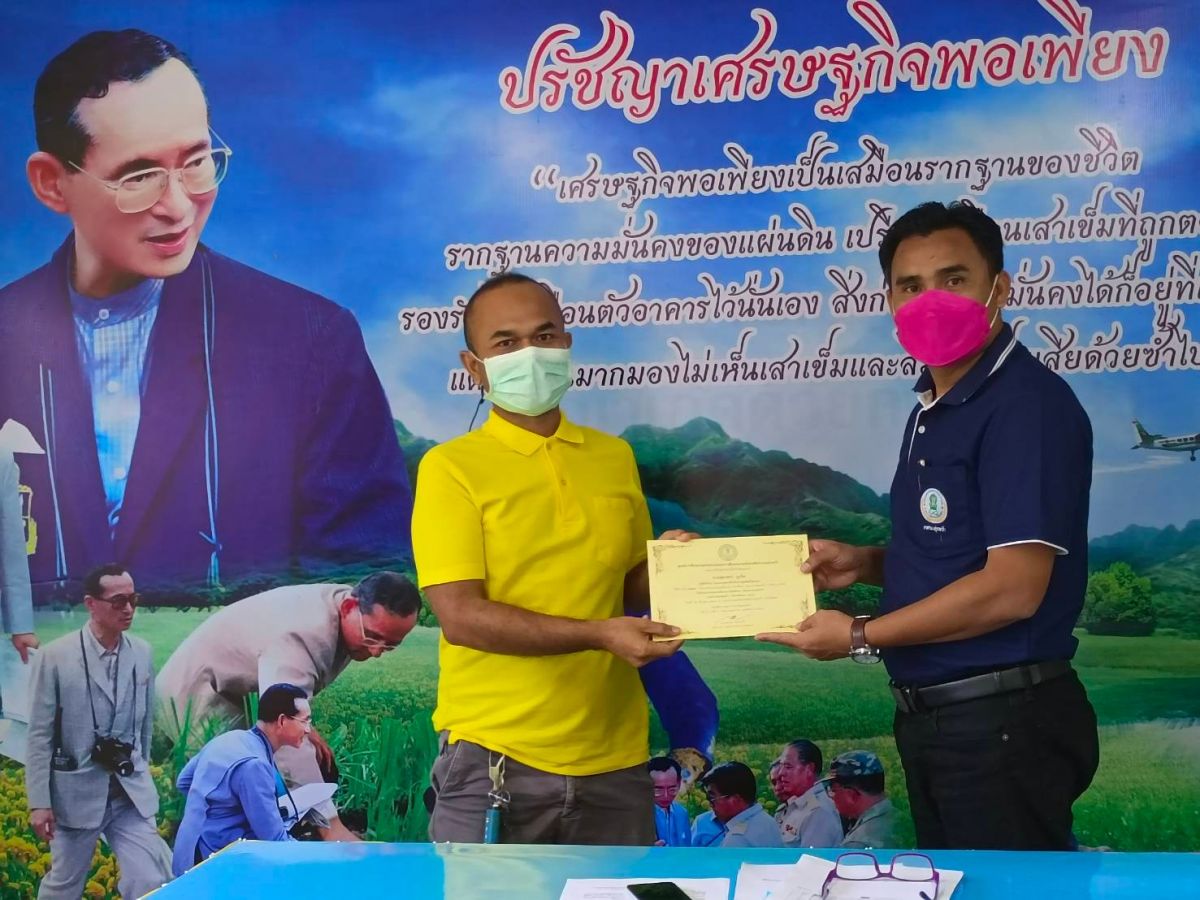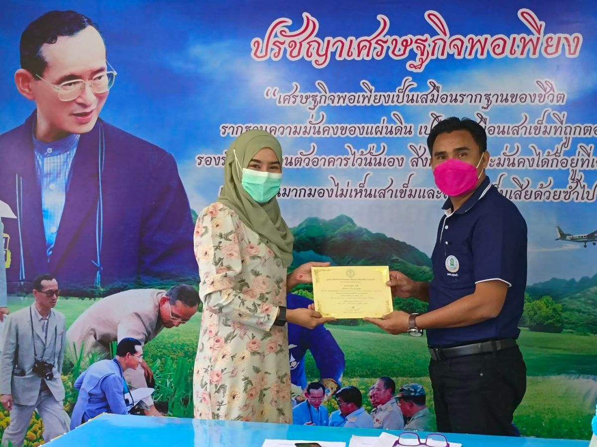 นายอาดำ ลิงาลาห์ ผู้อำนวยการศูนย์ กศน.อำเภอทุ่งหว้า จังหวัดสตูล มอบเกียรติบัตรการประกวดโครงงานวิทยาศาตร์ ให้แก่บุคลากร