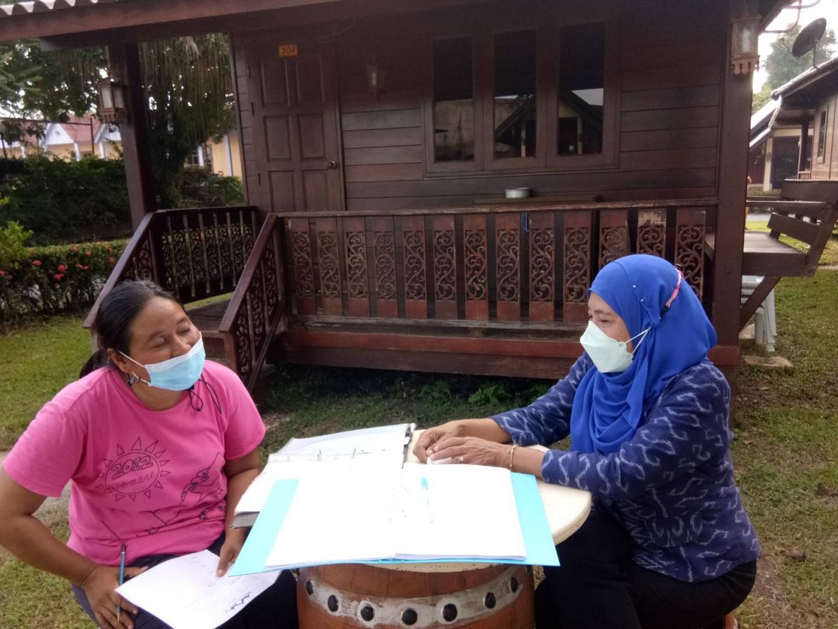 นางนิสานาถ หยีปอง ครูอาสาฯ กศน.อำเภอทุ่งหว้า ติดต่อประสานวิยากรและสถานที่ในการจัดค่ายฝึกประสบการณ์ภาษาสู่การประกอบอาชีพ