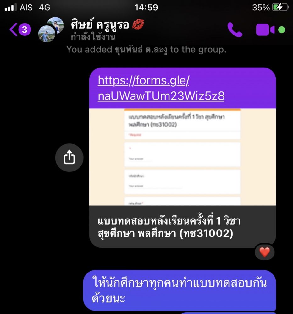 พบกลุ่มนักศึกษา ระดับม.ปลาย รายวิชาสุขศึกษา พลศึกษา โดยหมายงาน ในห้องเรียน On line