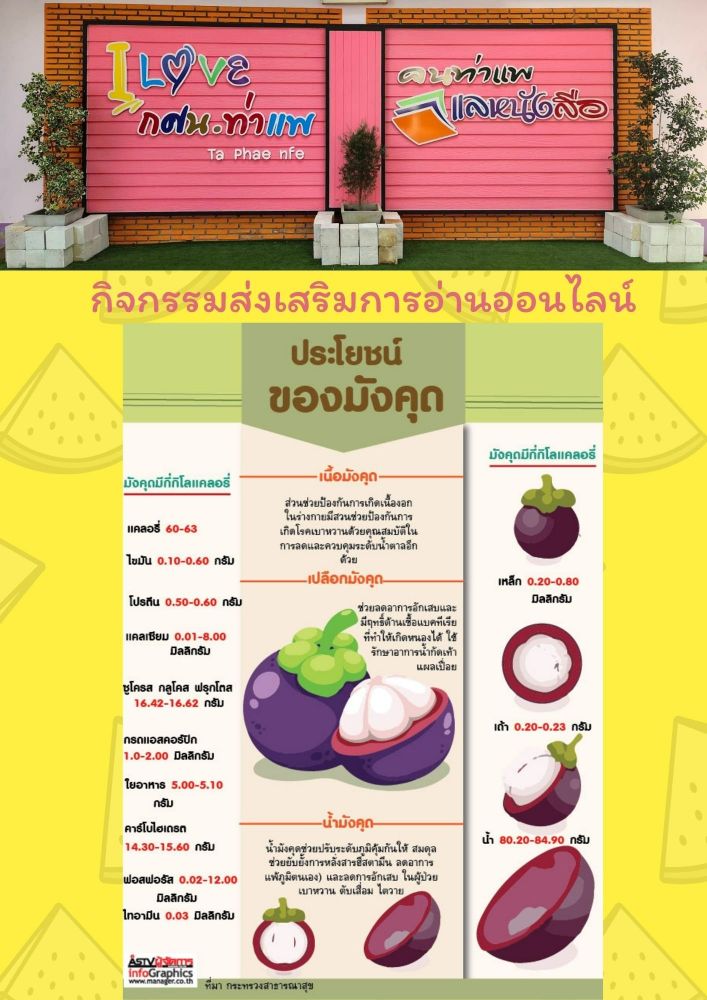 "ประโยชน์ของมังคุด" เพื่อส่งเสริมการอ่านให้กับประชาชนทั่วไปที่สนใจ ได้ทราบว่าผลไม้มีประโยชน์อย่างไร