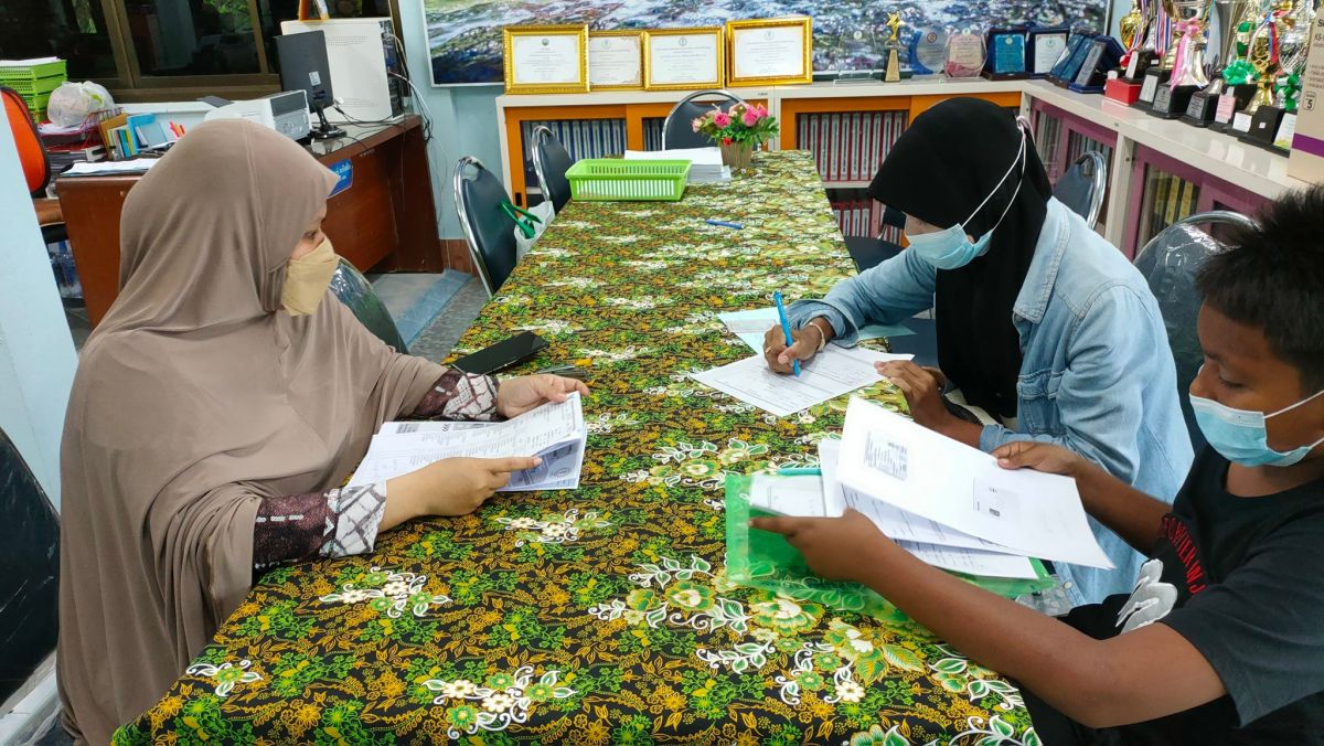 นางสาววชิรา คงพูล ตำแหน่ง บรรณารักษ์ปฏิบัติการ รักษาการในตำแหน่ง ผู้อำนวยการ กศน.อำเภอท่าแพ จังหวัดสตูล มอบหมายให้ บุคลากร กศน.อำเภอท่าแพ รับสมัครนักศึกษาใหม่ ภาคเรียนที่ 1 ปีการศึกษา 2565 ณ กศน.อำเภอท่าแพ จังหวัดสตูล