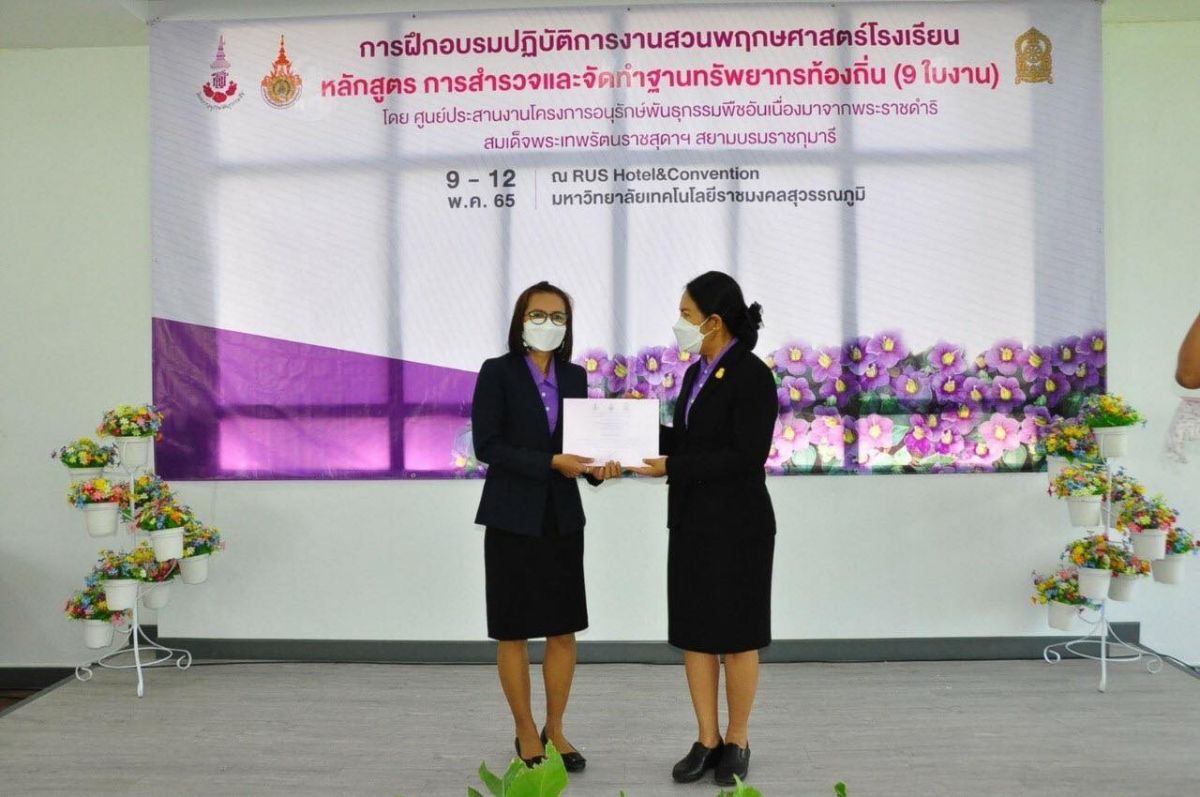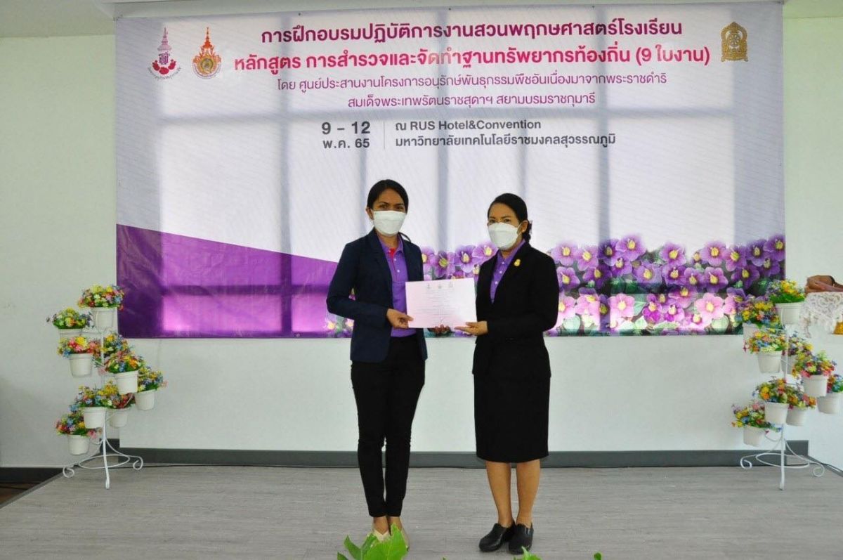 นายทวีศักดิ์ แซ่เจน ครูชำนาญการ รักษาการในตำแหน่งผู้อำนวยการศูนย์ กศน.อำเภอควนกาหลง มอบหมายให้นางสาวกันยารัตน์ ทองแก้ว บรรณารักษ์ปฏิบัติการพร้อมด้วยนางธิราวดี อินทานุกูล ครูผู้ช่วย เข้าร่วมโครงการฝึกอบรมปฏิบัติการสวนพฤกษศาสตร์โรงเรียน หลักสูตรการสำรวจและจัดทำฐานทรัพยากรท้องถิ่น ( 9 ใบงาน) ระหว่างวันที่9-12 พฤษภาคม 2565 ณ ศูนย์ประสานงาน อพ.สธ มหาวิทยาลัยเทคโนโลยีราชมงคลสุวรรณภูมิ ศูนย์พระนครศรีอยุธยา หันตรา จังหวัดพระนครศรีอยุธยา