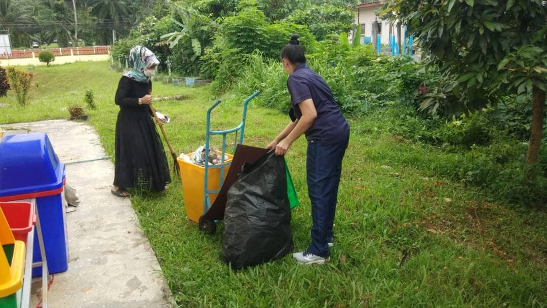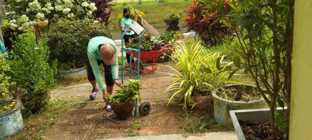 นายทวีศักดิ์ แซ่เจน ครูชำนาญการ รักษาการในตำแหน่งผู้อำนวยการ กศน. อำเภอควนกาหลง พร้อมด้วยบุคลากรร่วมกิจกรรม 5 ส พัฒนารอบๆบริเวณสำนักงานกศน.อำเภอควนกาหลง จ.สตูล