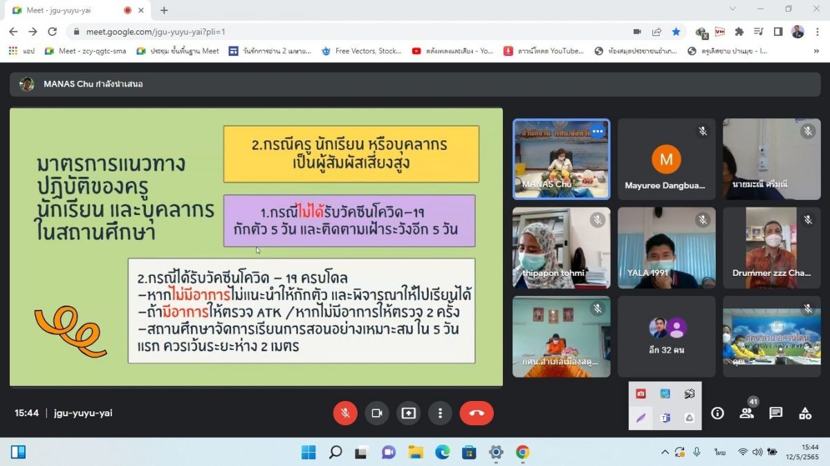 นางสาวนุรวาตี หมัดสกุล ครู กศน.ตำบลย่านซื่อ และนางสาวรมณีย์ ทิ้งปากถ้ำ ครูอาสาสมัคร กศน.ตำบลย่านซื่อ พร้อมด้วยบุคลกร กศน.อำเภอควนโดน ได้รับมอบหมายจากนายคณาธิป บุญญารัตน์ รองผู้อำนวยการสำนักงาน กศน.จังหวัดสตูล รักษาการในตำแหน่งผู้อำนวยการ กศน.อำเภอควนโดน ให้เข้าร่วมประชุมเตรียมความพร้อมการเปิดภาคเรียนที่ 1 ปีการศึกษา 2565 ผ่านระบบสื่ออิเล็กทรอนิกส์ (Google Meet) โดยรับชม ณ ห้องประชุม กศน.อำเภอควนโดน จังหวัดสตูล