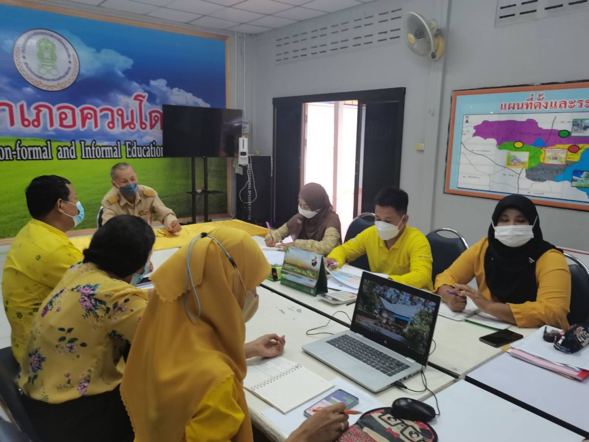 นายยัฟรี หมันเส็น ครูอาสาสมัครประจำสถาบันปอเนาะ พร้อมด้วยบุคลากร กศน..อำเภอควนโดน เข้าร่วมประชุมบุคลากร ประจำสัปดาห์ เพื่อติดตามการดำเนินงาน และปรึกษาหารือแนวทางการดำเนินงานในไตรมาส 3 -4 เพื่อให้เป็นไปตามนโยบายเร่งด่วนสำนักงาน กศน. เพื่อให้เป็นไปในทิศทางเดียวกัน ณ ห้องประชุม กศน. อำเภอควนโดน จังหวัดสตูล โดยมีนายคณาธิป บุญญารัตน์ รองผู้อำนวยการสำนักงาน กศน.จังหวัดสตูล รักษาการในตำแหน่งผู้อำนวยการ กศน.อำเภอควนโดน เป็นประธานและดำเนินการประชุม