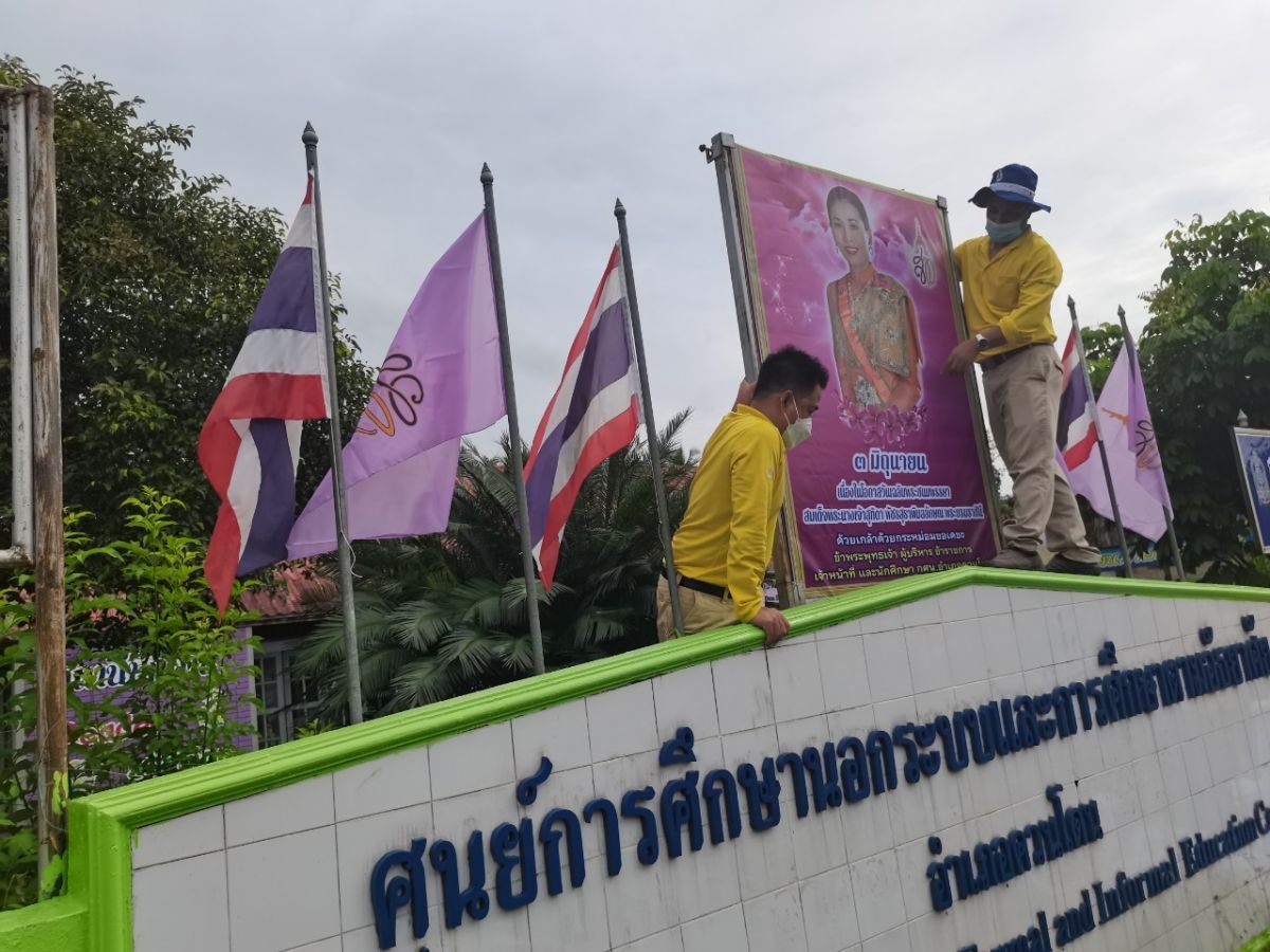 กศน.อำเภอควนโดน จังหวัดสตูล ร่วมพระฉายาลักษณ์ ประดับธงชาติคู่กับธงอักษรพระนามาภิไธย ส.ท.