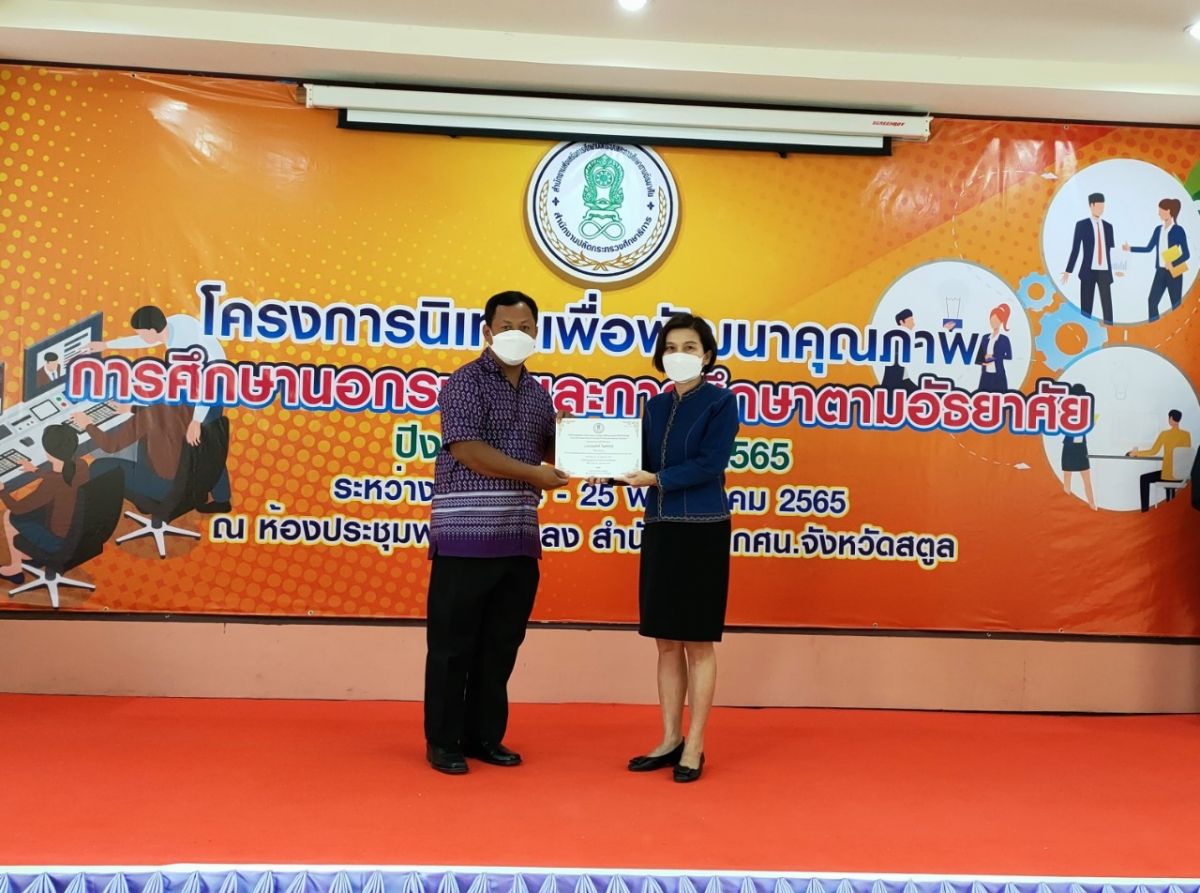 นายเกษมศักดิ์ ไชยพิทักษ์ บรรณารักษ์ห้องสมุดประชาชนอำเภอควนโดน ได้รับมอบหมายจากนายคณาธิป บุญญารัตน์ รองผู้อำนวยการสำนักงาน กศน.จังหวัดสตูล รักษาการในตำแหน่งผู้อำนวยการ กศน.อำเภอควนโดน ให้เข้าร่วมอบรมโครงการนิเทศเพื่อพัฒนาคุณภาพการศึกษานอกระบบและการศึกษาตามอัธยาศัย ปีงบประมาณ พ.ศ.2565 โดยมีกลุ่มเป้าหมาย ผู้รับผิดชอบงานการศึกษาขั้นพื้นฐาน ผู้รับผิดชอบงานการศึกษาต่อเนื่อง ผู้รับผิดชอบงานการศึกษาตามอัธยาศัย และผู้รับผิดชอบงานการนิเทศ เข้าร่วมโครงการ ณ ห้องประชุมพญากาหลง สำนักงาน กศน.สตูล โดยได้รับเกียรติจากนายปรเมศวร์ ศิริรัตน์ รองเลขาธิการ กศน. เป็นประธานในพิธีเปิด โครงการนิเทศเพื่อพัฒนาคุณภาพการศึกษานอกระบบและการศึกษาตามอัธยาศัยปีงบประมาณ พ.ศ.2565 และนางสาวนราวรรณ เวชธรรม ผู้อำนวยการ สำนักงาน กศน.จังหวัดสตูล เป็นผู้กล่าวรายงาน