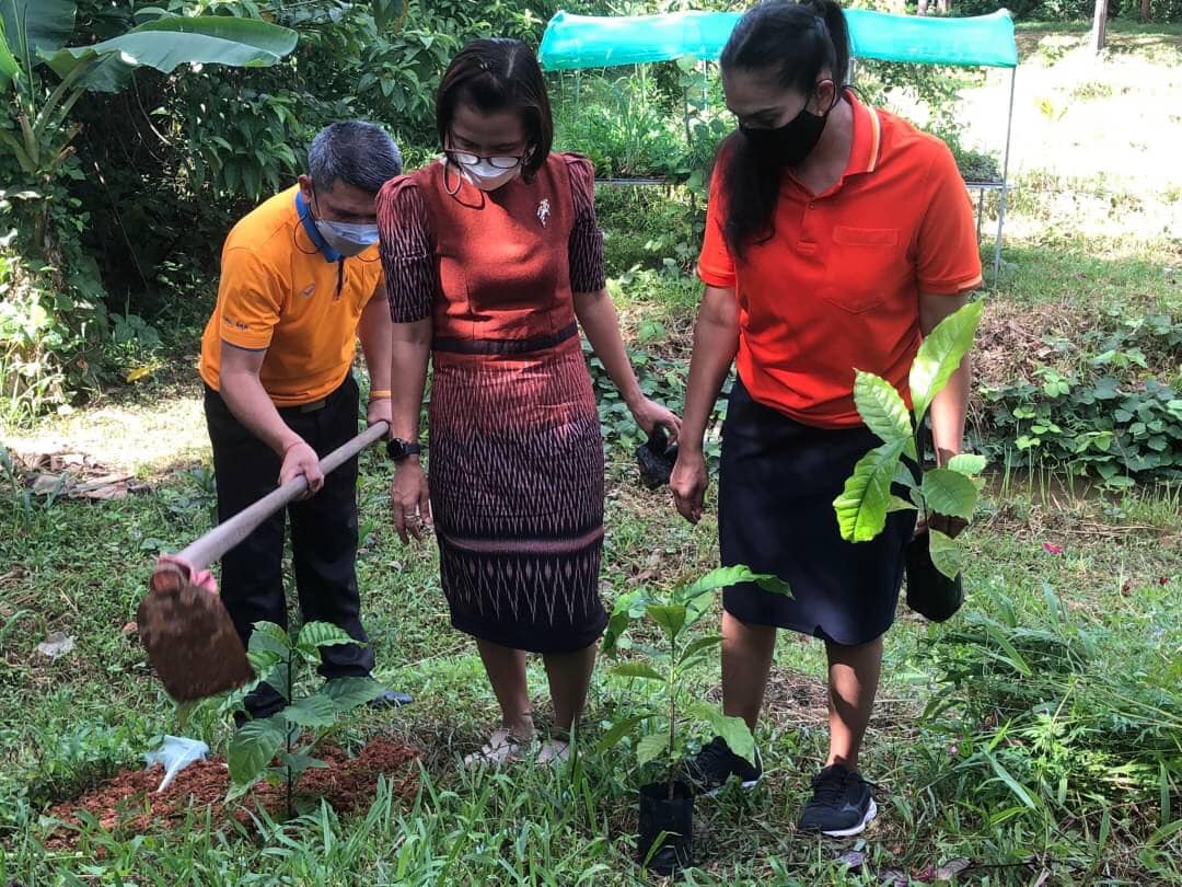 นายทวีศักดิ์ แซ่เจน ครูชำนาญการ รักษาการในตำแหน่งผู้อำนวยการศูนย์ กศน.อำเภอควนกาหลง พร้อมด้วยบุคลากรและนักศึกษากศน.อำเภอควนกาหลงร่วมปลูกต้นไม้ เพื่อเป็นศูนย์เรียนรู้ให้กับนักศึกษาบริเวณโคก หนองนา กศน.อำเภอควนกาหลง จังหวัดสตูล