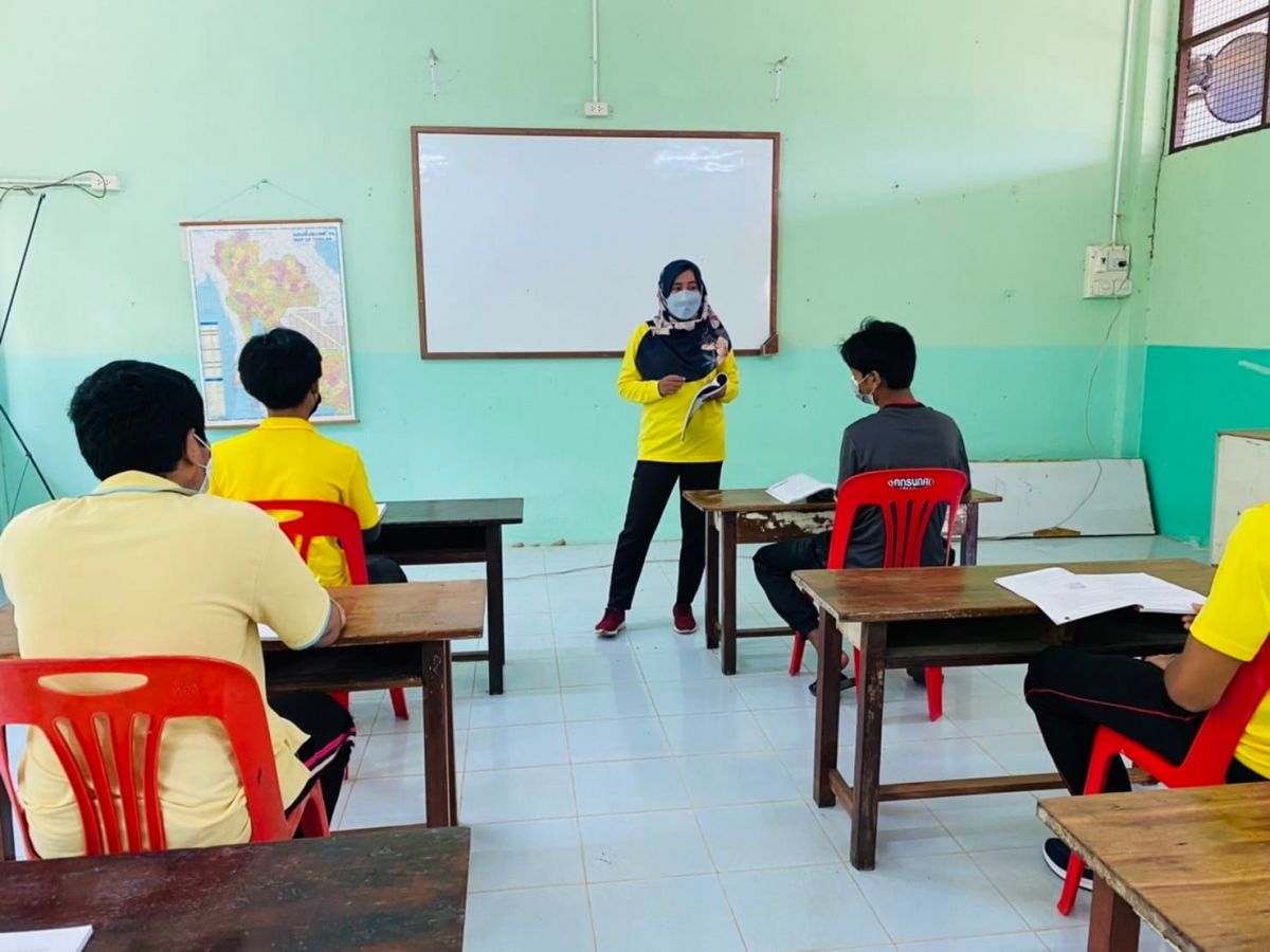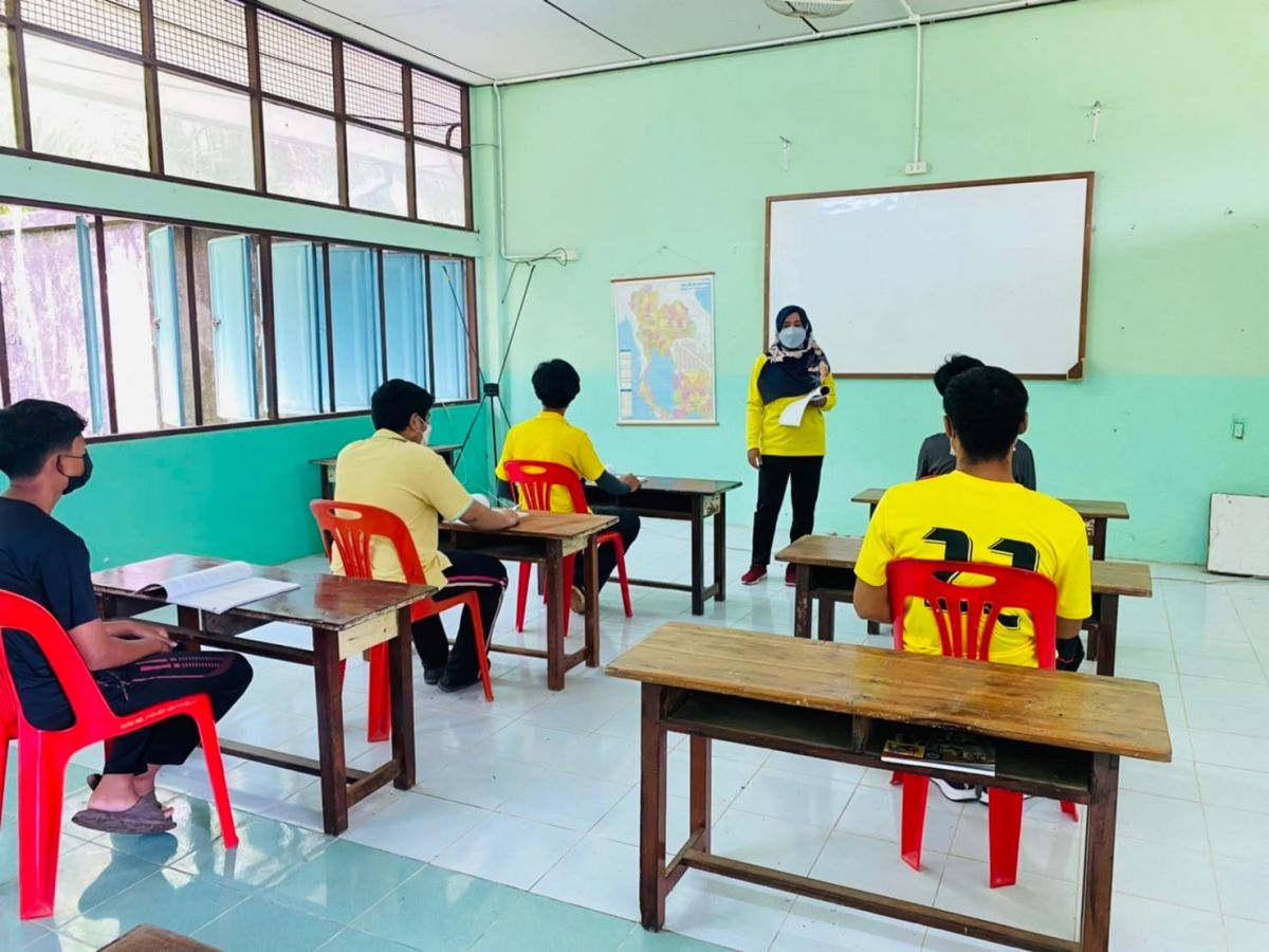 นางสาวฮาบีบะห์ เจ๊ะสมอเจ๊ะ ครู กศน.ตำบลควนโดน ได้รับมอบหมายจาก นายคณาธิป บุญญารัตน์ รองผู้อำนวยการ สำนักงาน กศน.จังหวัดสตูล รักษาการในตำแหน่ง ผู้อำนวยการ กศน.อำเภอควนโดน จังหวัดสตูล จัดกระบวนการเรียนการสอนระดับมัธยมศึกษาตอนปลาย ภาคเรียนที่ 1/2565 โดยกระบวนการดำเนินการจัดกิจกรรมเป็นไปตามแนวปฏิบัติการควบคุมและป้องกันการแพร่ระบาดของโรคติดเชื้อไวรัสโคโรน่า 2019 ณ ศูนย์การเรียนรู้สำหรับทุกช่วงวัย กศน. บ้านถ้ำทะลุ ตำบลควนโดน อำเภอควนโดน จังหวัดสตูล