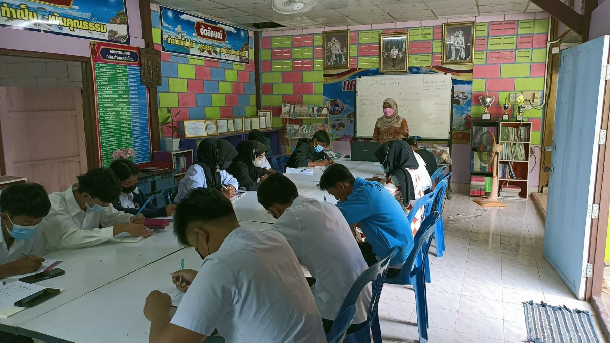 นางสาวฮาบีบะห์ เจ๊ะสมอเจ๊ะ ครู กศน.ตำบลควนโดน ได้รับมอบหมายจาก นายคณาธิป บุญญารัตน์ รองผู้อำนวยการ สำนักงาน กศน.จังหวัดสตูล รักษาการในตำแหน่ง ผู้อำนวยการ กศน.อำเภอควนโดน จังหวัดสตูล จัดกระบวนการเรียนการสอนระดับมัธยมศึกษาตอนปลาย ภาคเรียนที่ 1/2565 โดยกระบวนการดำเนินการจัดกิจกรรมเป็นไปตามแนวปฏิบัติการควบคุมและป้องกันการแพร่ระบาดของโรคติดเชื้อไวรัสโคโรน่า 2019 ณ กศน.ตำบลควนโดน อำเภอควนโดน จังหวัดสตูล