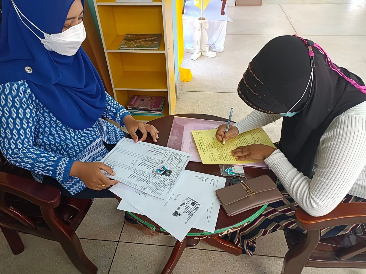 นางสาวนุรวาตี หมัดสกุล ครู กศน.ตำบลย่านซื่อ ได้รับมอบหมาย จากนายคณาธิป บุญญารัตน์ รองผู้อำนวยการสำนักงาน กศน.จังหวัดสตูล รักษาการในตำแหน่ง ผู้อำนวยการ กศน.อำเภอควนโดน จังหวัดสตูล รับสมัครนักศึกษาใหม่ ประจำภาคเรียนที่ 1/2565 โดยกระบวนการดำเนินการจัดกิจกรรมเป็นไปตามแนวปฏิบัติการควบคุมและป้องกันการแพร่ระบาดของโรคติดเชื้อไวรัสโคโรน่า 2019 ณ กศน.อำเภอควนโดน จังหวัดสตูล