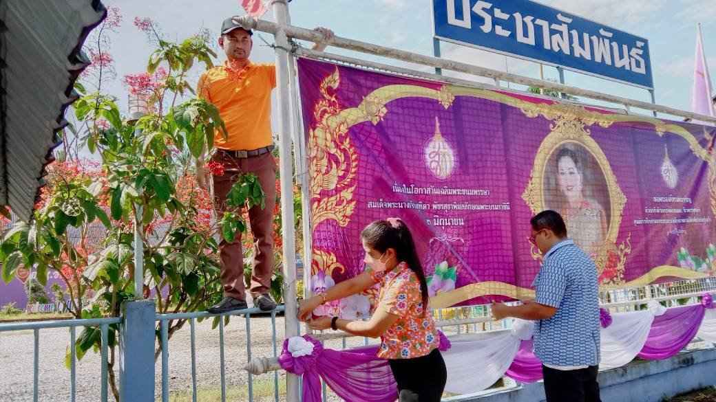 กศน.อำเภอทุ่งหว้า ร่วมประดับพระฉายาลักษณ์เพื่อเฉลิมพระเกียรติสมเด็จพระนางเจ้าฯ พระบรมราชินี เนื่องในโอกาสวันเฉลิมพระชนมพรรษา 3 มิถุนายน 2565