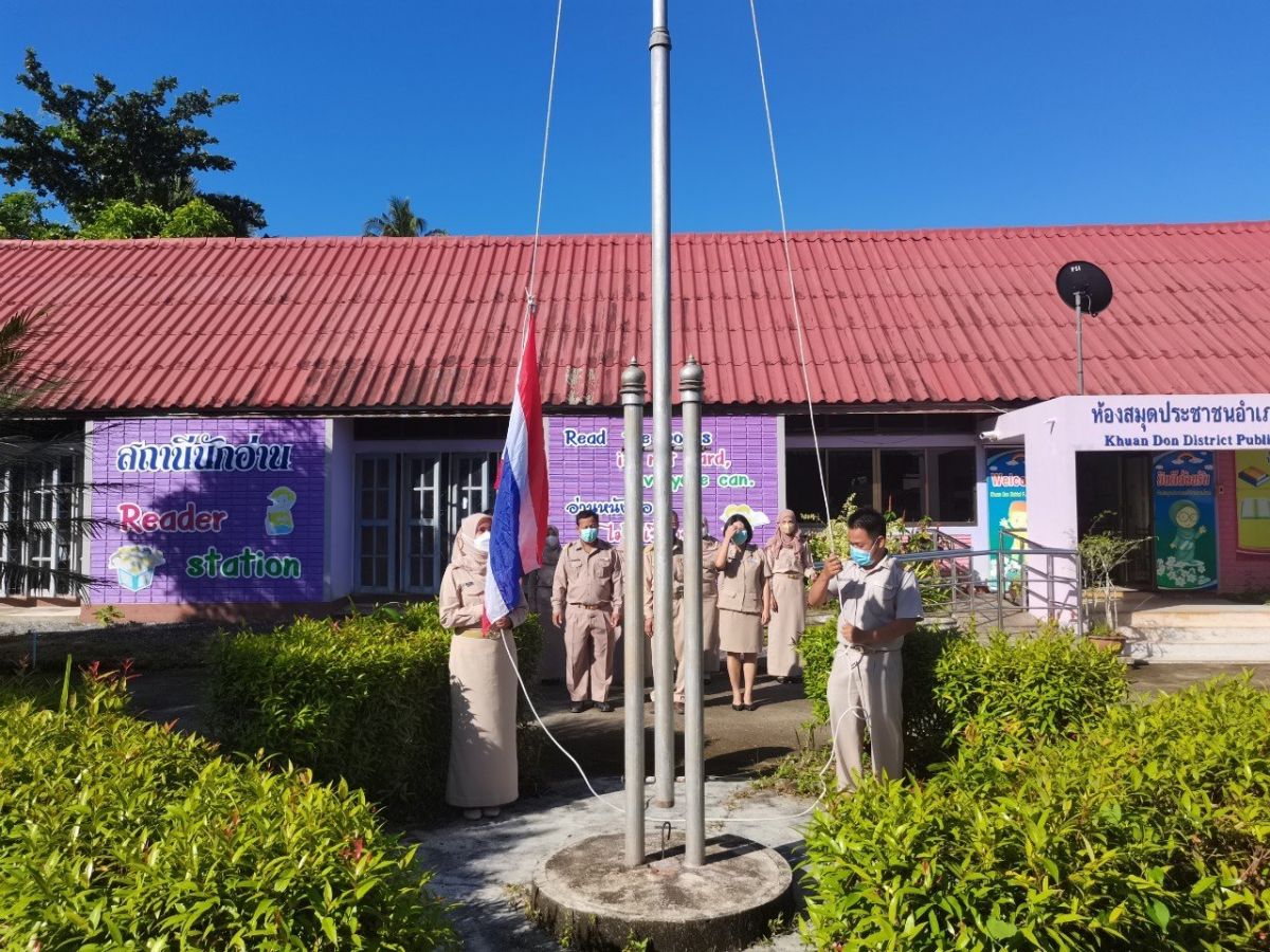 กศน.อำเภอควนโดน จังหวัดสตูล เคารพธงชาติ ทำกิจกรรมทางศาสนา เพื่อแสดงความจงรักภักดีต่อสถาบันชาติ ศาสนา และพระมหากษัตริย์