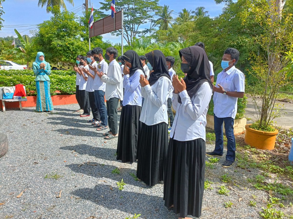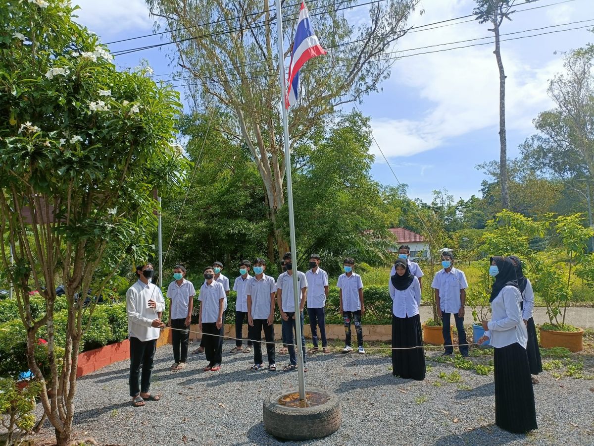 กศน.ตำบลควนสตอ อำเภอควนโดน จังหวัดสตูล เคารพธงชาติ ทำกิจกรรมทางศาสนา เพื่อแสดงความจงรักภักดีต่อสถาบันชาติ ศาสนา และพระมหากษัตริย์