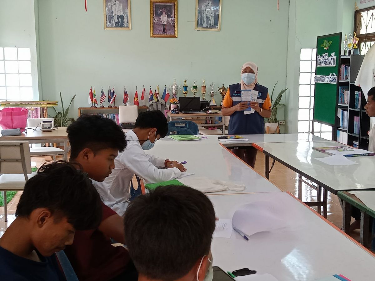 นางวนิดา รักเมือง ครู กศน.ตำบลวังประจัน ได้รับมอบหมายจาก นายคณาธิป บุญญารัตน์ รองผู้อำนวยการ สำนักงาน กศน.จังหวัดสตูล รักษาการในตำแหน่ง ผู้อำนวยการ กศน.อำเภอควนโดน จังหวัดสตูล จัดกระบวนการเรียนการสอนระดับมัธยมศึกษาตอนปลาย ภาคเรียนที่ 1/2565 ในรายวิชา สุขศึกษาและพละศึกษา โดยมีนางสาวนัฐฌา รูบามา (อาสาสมัครฯ) เป็นวิทยากรผู้ช่วยในการจัดการเรียนการสอน ในเรื่องความปลอดภัย แก่ตนเองและผู้อื่น กระบวนการดำเนินการจัดกิจกรรมเป็นไปตามแนวปฏิบัติการควบคุมและป้องกันการแพร่ระบาดของโรคติดเชื้อไวรัสโคโรน่า 2019 ณ กศน.ตำบลวังประจัน อำเภอควนโดน จังหวัดสตูล