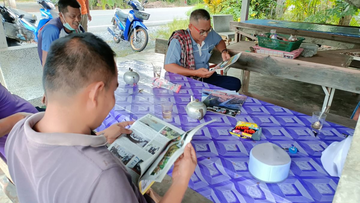 กศน.ตำบลควนโดน หมุนเวียนสื่อบ้านหนังสือชุมชนร้านน้ำชา บ้านนาปริก