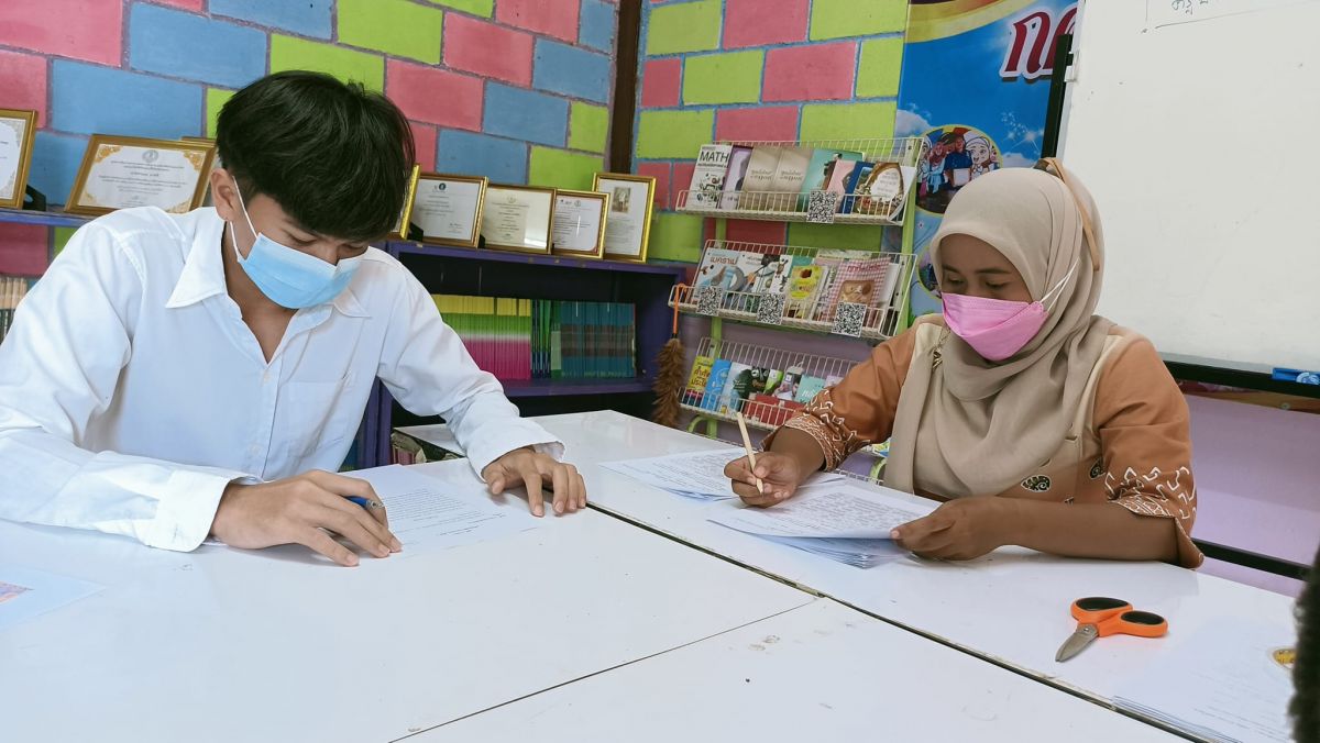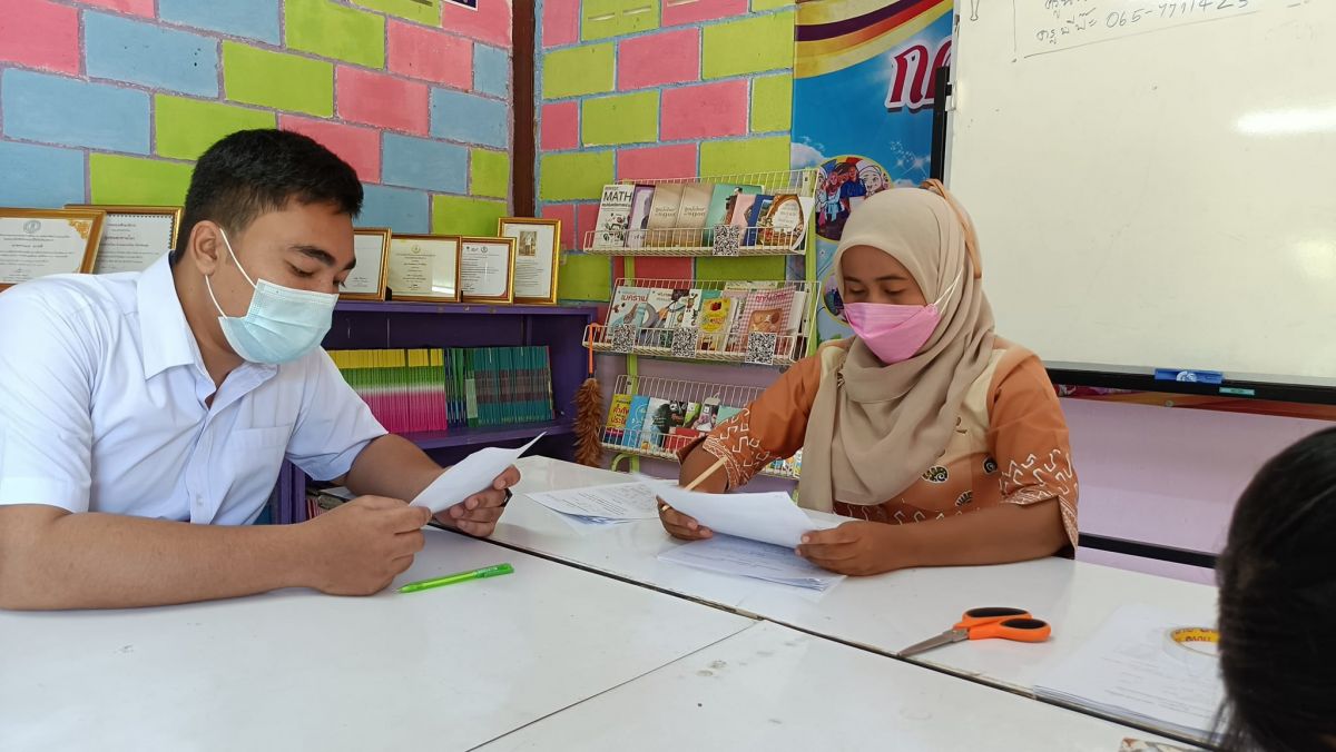 นางสาวฮาบีบะห์ เจ๊ะสมอเจ๊ะ ครู กศน.ตำบลควนโดน ได้รับมอบหมายจาก นายคณาธิป บุญญารัตน์ รองผู้อำนวยการ สำนักงาน กศน.จังหวัดสตูล รักษาการในตำแหน่ง ผู้อำนวยการ กศน.อำเภอควนโดน จังหวัดสตูล ประเมินระดับการรู้หนังสือสำหรับนักศึกษา ประจำภาคเรียนที่ 1/2565 โดยกระบวนการดำเนินการจัดกิจกรรมเป็นไปตามแนวปฏิบัติการควบคุมและป้องกันการแพร่ระบาดของโรคติดเชื้อไวรัสโคโรน่า 2019 ณ กศน.ตำบลควนโดน อำเภอควนโดน จังหวัดสตูล