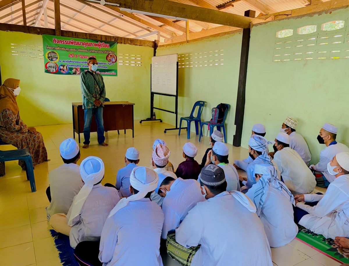 ครูอาสาประจำสถาบันศึกษาปอเนาะท่องจำอัลกุรอ่านอัลฟิรเดาวส์ อำเภอควนโดน จัดกิจกรรมพัฒนาคุณภาพผู้เรียนโครงการส่งเสริมคุณธรรม จริยธรรม นักศึกษาปอเนาะหัวใจสีขาว