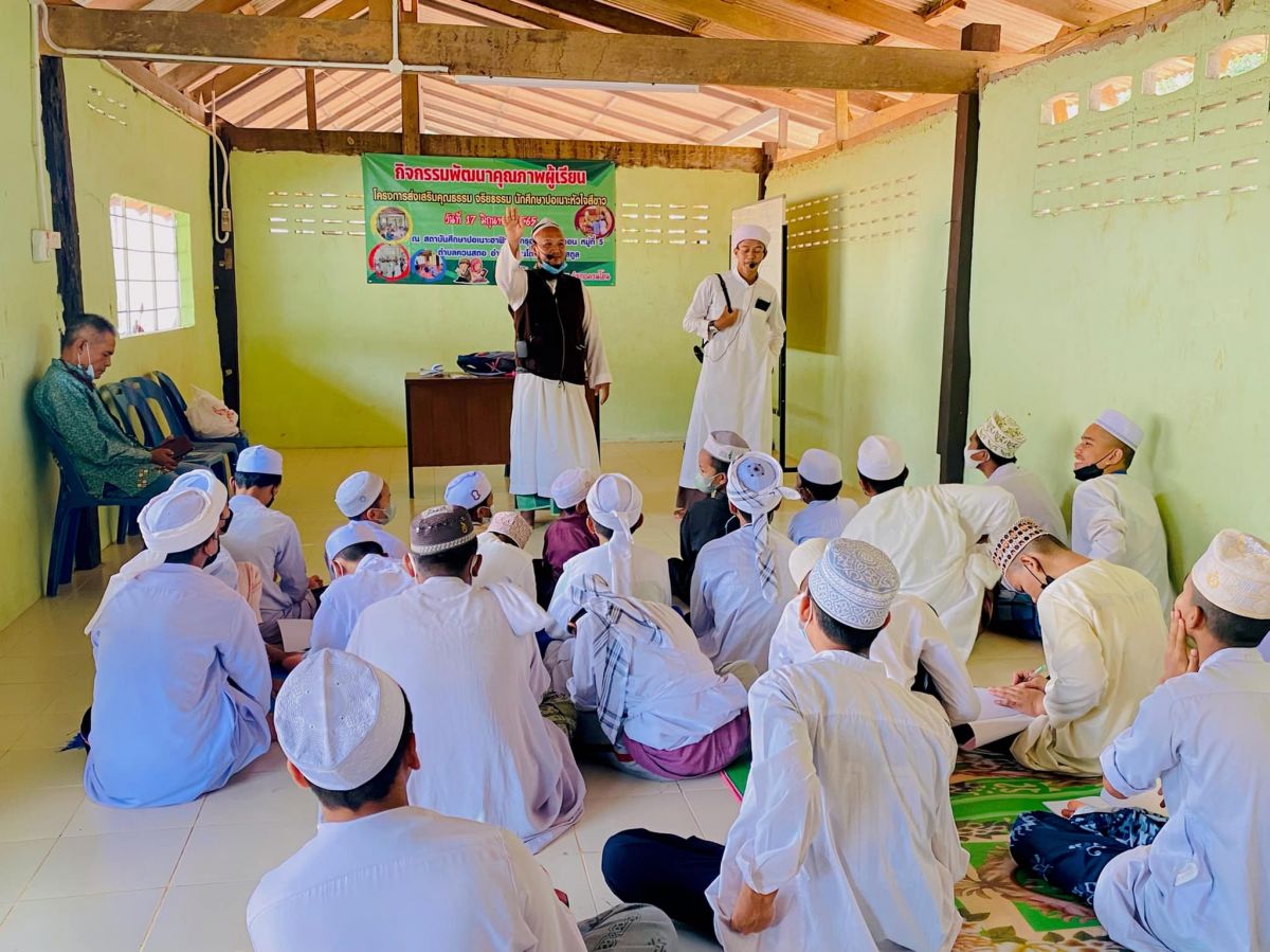 นายยัฟรี หมันเส็น ครูอาสาสมัครฯ ประจำสถาบันศึกษาปอเนาะได้รับมอบหมายจาก นายคณาธิป บุญญารัตน์ รองผู้อำนวยการ สำนักงาน กศน.จังหวัดสตูล รักษาการในตำแหน่ง ผู้อำนวยการ กศน.อำเภอควนโดน จังหวัดสตูล จัดกิจกรรมพัฒนาคุณภาพผู้เรียนโครงการส่งเสริมคุณธรรม จริยธรรม นักศึกษาปอเนาะหัวใจสีขาว มีนักศึกษาเข้าร่วมโครงการจำนวน 40 คน โดยมีนายอาหมาด หมาดหาบ ผู้ใหญ่บ้านตำบลควนสตอ ป็นผู้กล่าวเปิดโครงการ นายฮาบีบุลลอฮ์ ลาโหยด เป็นวิทยากรในช่วงเช้า และนายฮาสัน พรัดขำ เป็นวิทยากรในช่วงบ่าย ณ สถาบันศึกษาปอเนาะฮาฟิซอัลฟุรกอน ต.ควนสตอ อ.ควนโดน จ.สตูล