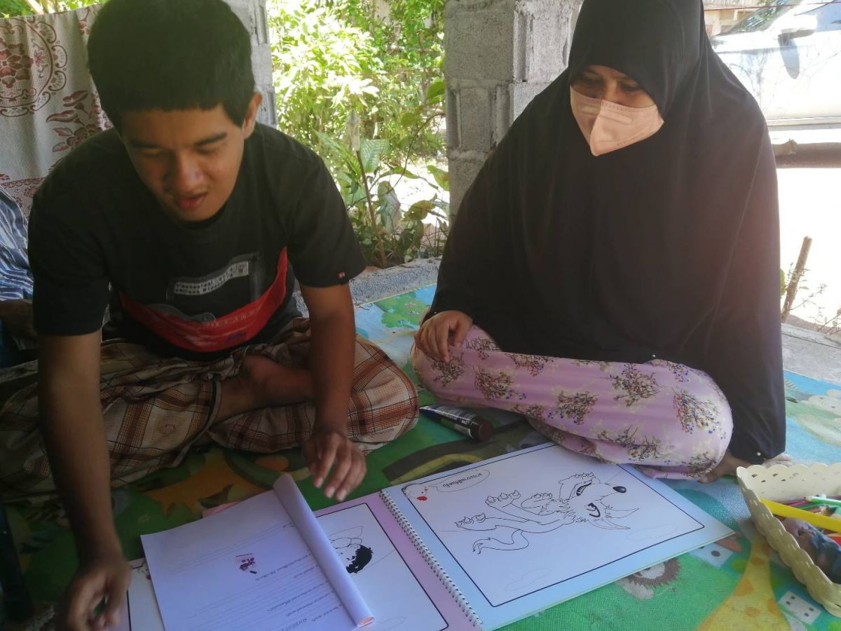 นางสาววชิรา คงพูล บรรณารักษ์ปฎิบัติการ รักษาการในตำแหน่ง ผู้อำนวยการ กศน.อำเภอท่าแพ มอบหมายให้ นางมัยมูนะห์ หะยีเหย็บ ครู อาสาฯ จัดกิจกรรม การเรียนการสอนให้กลุ่มเป้าหมายพิเศษ คนพิการ ณ หมู่ที่ 2 ตำบลสาคร ภายใต้การควบคุมการแพร่ระบาดของเชื้อไวรัสโคโรนา 2019 อย่างเคร่งครัด