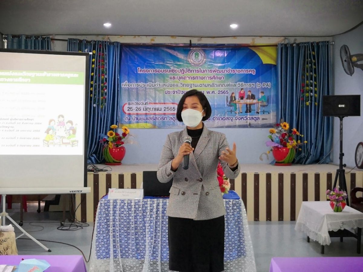 เพื่อประเมินตำแหน่งและวิทยฐานะตามหลักเกณฑ์และวิธีการฯ (ว PA) ประจำปีงบประมาณ พ.ศ. 2565 โดยมี ดร.ณัชชารีย์ โรจน์บุญยฤทธิ์ นักทรัพยากรบุคคลชำนาญการพิเศษ ผู้อำนวยการกลุ่มบริหารงานบุคคล สำนักงานศึกษาธิการจังหวัดกระบี่ เป็นวิทยากร และมีนายคณาธิป บุญญารัตน์ รองผู้อำนวยการ สำนักงาน กศนจังหวัดสตูล เป็นประธานเปิดโครงการ ณ บ้านชมเลรีสอร์ท สตูล ตำบลแหลมสน อำเภอละงู จังหวัดสตูล