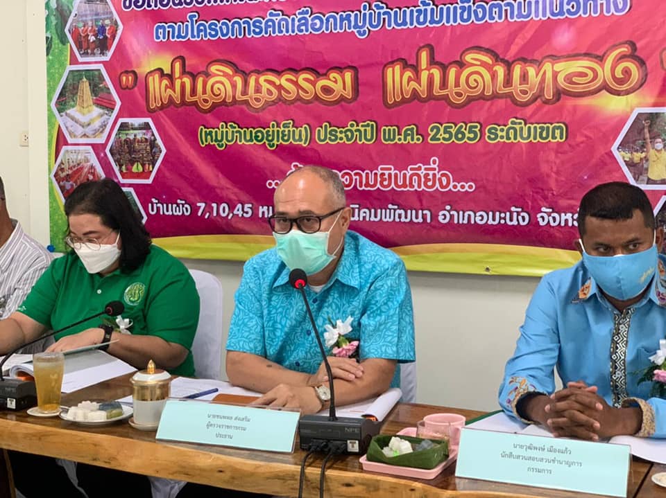 นางสาวจตุพร ทหารไทย ครูชำนาญการ รักษาการในตำแหน่ง ผู้อำนวยการ กศน.อำเภอมะนัง จังหวัดสตูล มอบหมายใหนายนภัทร จันทวิลาศ ครู กศน.ตำบลนิคมพัฒนา ร่วมต้อนรับคณะกรรมการตรวจประเมินผลงานและตัดสินตามโครงการคัดเลือกหมู่บ้านเข้มแข็งตามแนวทาง “แผ่นดินธรรม แผ่นดินทอง” (หมู่บ้านอยู่เย็น) ประจำปี 2565 ระดับเขต เขตตรวจราชการที่ 6 ในพื้นที่กลุ่มจังหวัดภาคใต้ฝั่งอันดามัน โดยมีนายชนพหล ส่งเสริม ผู้ตรวจราชการกรมการปกครอง เป็นประธานคณะกรรมการฯ ลงพื้นที่ตรวจประเมินผลงานฯ บ้านผัง 7,10,45 หมู่ที่ 3 ตำบลนิคมพัฒนา อำเภอมะนัง จังหวัดสตูล เข้ารับการตรวจประเมินผลงาน