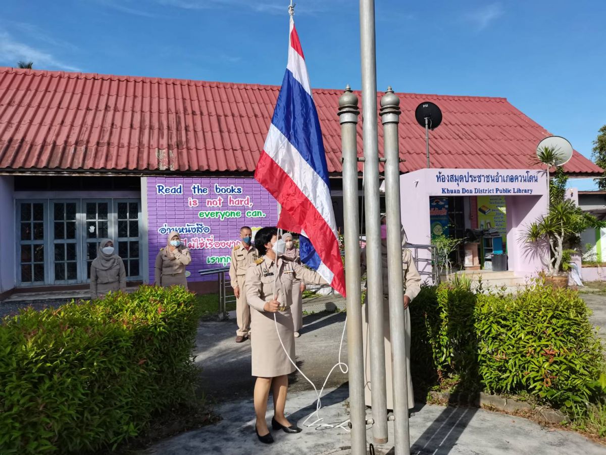 นางสาวอาฟีฟา อาลีมิง ครูอาสาสมัครฯ ประจำสถาบันศึกษาปอเนาะได้รับมอบหมายจาก นายคณาธิป บุญญารัตน์ รองผู้อำนวยการ สำนักงาน กศน.จังหวัดสตูล รักษาการในตำแหน่ง ผู้อำนวยการ กศน.อำเภอควนโดน จังหวัดสตูล ดำเนินกิจกรรมเข้าแถวเคารพธงชาติ ทำกิจกรรมทางศาสนา เพื่อแสดงความจงรักภักดีต่อสถาบันชาติ ศาสนา และพระมหากษัตริย์ โดยเป็นไปตามมาตรการป้องกันการแพร่ระบาดของโรคติดเชื้อไวรัสโคโรนา 2019 หรือ (COVID-19) ณ บริเวณหน้าเสาธง กศน.อำเภอควนโดน จังหวัดสตูล