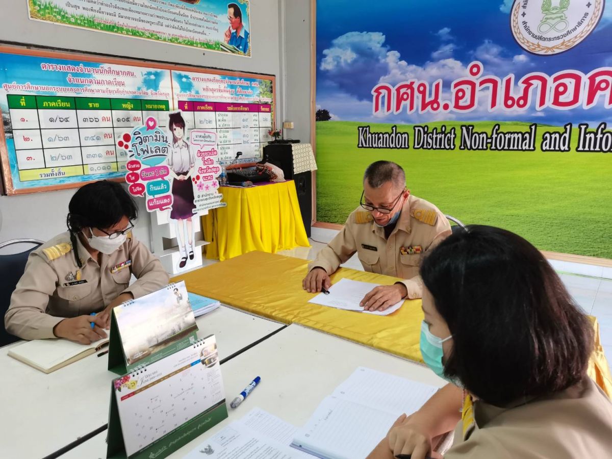 นายคณาธิป บุญญารัตน์ รองผู้อำนวยการสำนักงาน กศน.จังหวัดสตูล รักษาการในตำแหน่งผู้อำนวยการ กศน.อำเภอควนโดน จังหวัดสตูล เป็นประธานและดำเนินการประชุมบุคลากรในสังกัด กศน.อำเภอควนโดน เพื่อร่วมกันวางแผนขับเคลื่อนการจัดกิจกรรมงาน กศน. ประจำปีงบประมาณ 2565 ไตรมาส 3-4 และติดตามความก้าวหน้าการดำเนินการจัดกิจกรรมการงานศึกษาต่อเนื่องไตรมาส 3 ณ ห้องประชุม กศน.อำเภอควนโดน จังหวัดสตูล