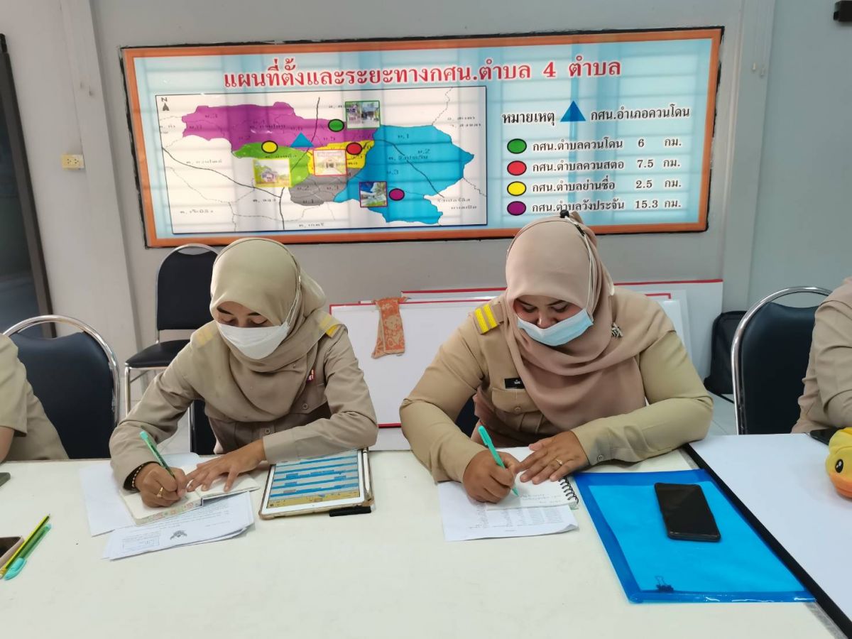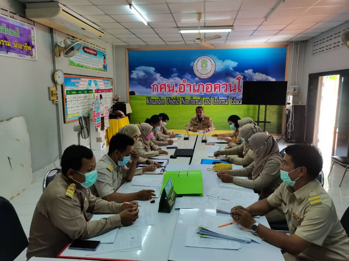 นางสาวอาฟีฟา อาลีมิง ครูอาสาสมัครประจำประจำสถาบันศึกษาปอเนาะท่องจำอัลกุรอัลฟินรเดาวส์ เข้าร่วมประชุมบุคลากรประจำสัปดาห์เพื่อรายการผลการดำเนินการจัดกิจกรรมการงานศึกษาต่อเนื่องไตรมาส 3 และร่วมกันวางแผนขับเคลื่อนการจัดกิจกรรมงาน กศน. ประจำปีงบประมาณ 2565 ไตรมาส 3-4 ณ ห้องประชุม กศน.อำเภอควนโดน จังหวัดสตูล โดยมีนายคณาธิป บุญญารัตน์ รองผู้อำนวยการสำนักงาน กศน.จังหวัดสตูล รักษาการในตำแหน่งผู้อำนวยการ กศน.อำเภอควนโดน จังหวัดสตูล เป็นประธานและดำเนินการประชุม