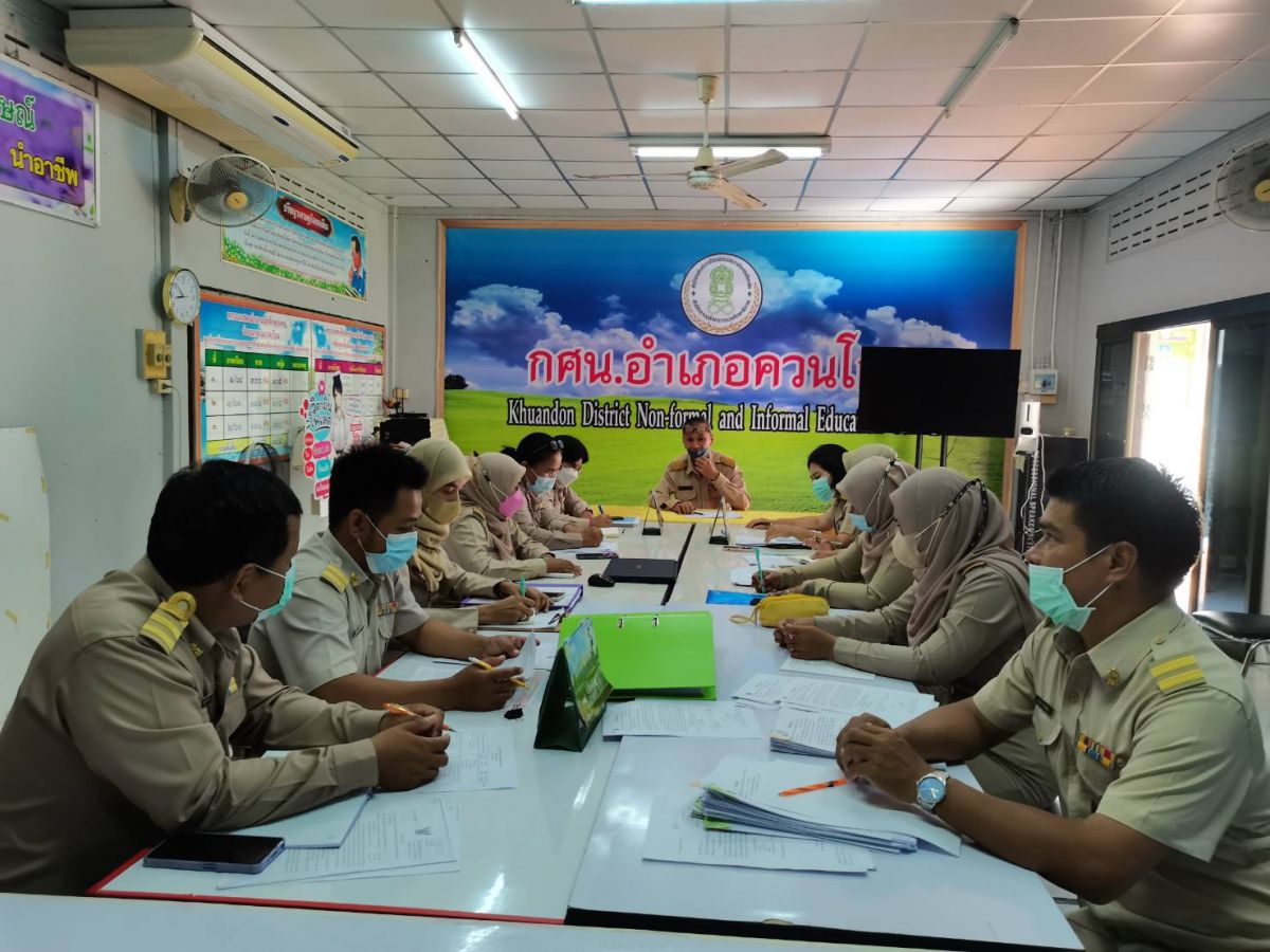 นายเกษมศักดิ์ ไชยพิทักษ์ บรรณารักษ์ ห้องสมุดประชาชนอำเภอควนโดน เข้าร่วมประชุมบุคลากรประจำสัปดาห์เพื่อรายการผลการดำเนินการจัดกิจกรรมการงานศึกษาต่อเนื่องไตรมาส 3 และร่วมกันวางแผนขับเคลื่อนการจัดกิจกรรมงาน กศน. ประจำปีงบประมาณ 2565 ไตรมาส 3-4 ณ ห้องประชุม กศน.อำเภอควนโดน จังหวัดสตูล โดยมีนายคณาธิป บุญญารัตน์ รองผู้อำนวยการสำนักงาน กศน.จังหวัดสตูล รักษาการในตำแหน่งผู้อำนวยการ กศน.อำเภอควนโดน จังหวัดสตูล เป็นประธานและดำเนินการประชุม
