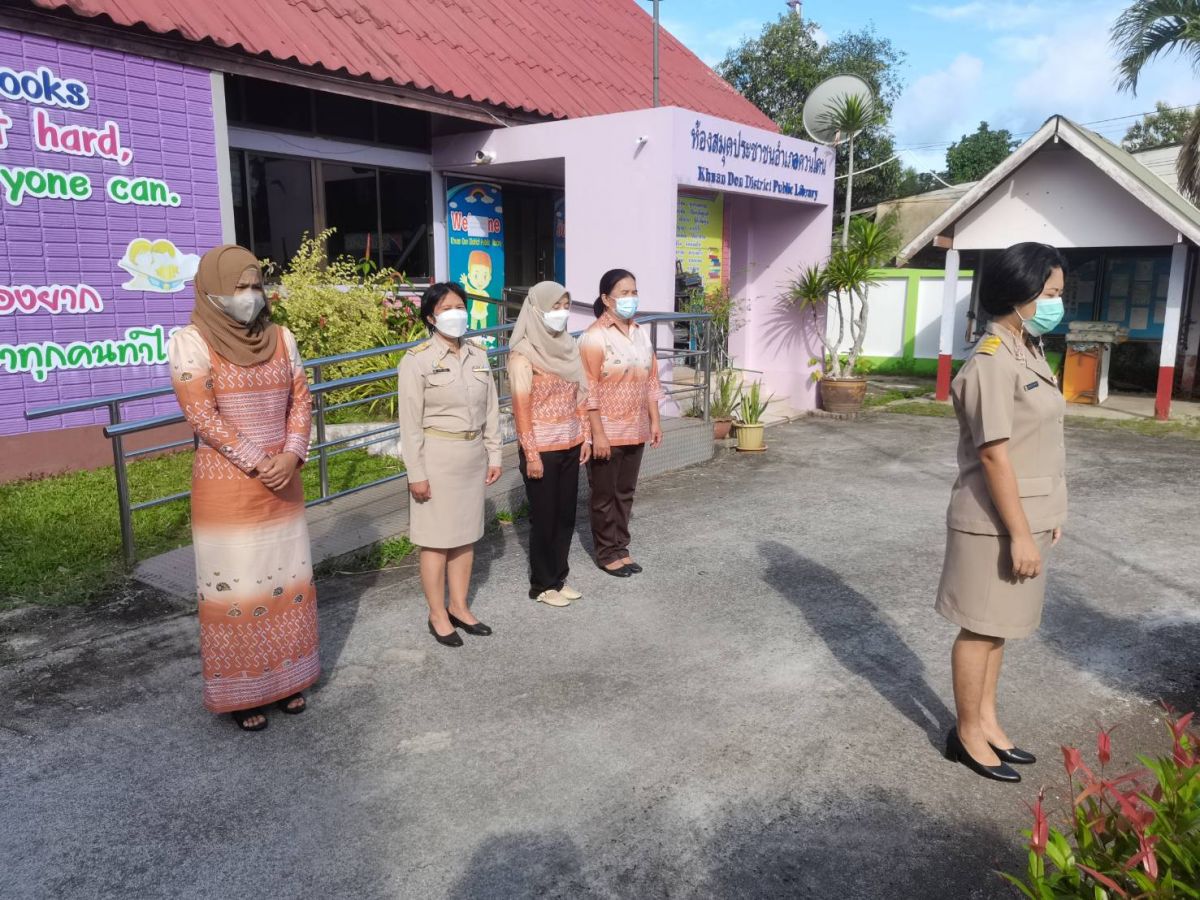 นางสาวจรรยารัตน์ พูลสวัสดิ์ ครูผู้ช่วย กศน.ตำบลวังประจัน พร้อมด้วยบุคลากรในสถานศึกษา ได้รับมอบหมายจาก นายคณาธิป บุญญารัตน์ รองผู้อำนวยการสำนักงาน กศน.จังหวัดสตูล รักษาการในตำแหน่งผู้อำนวยการ กศน.อำเภอควนโดน จังหวัดสตูล ดำเนินกิจกรรมเข้าแถวเคารพธงชาติ ทำกิจกรรมทางศาสนา เพื่อแสดงความจงรักภักดีต่อสถาบันชาติ ศาสนา และพระมหากษัตริย์ โดยเป็นไปตามมาตรการป้องกันการแพร่ระบาดของโรคติดเชื้อไวรัสโคโรนา 2019 หรือ (COVID-19) ณ บริเวณหน้าเสาธง กศน.อำเภอควนโดน จังหวัดสตูล